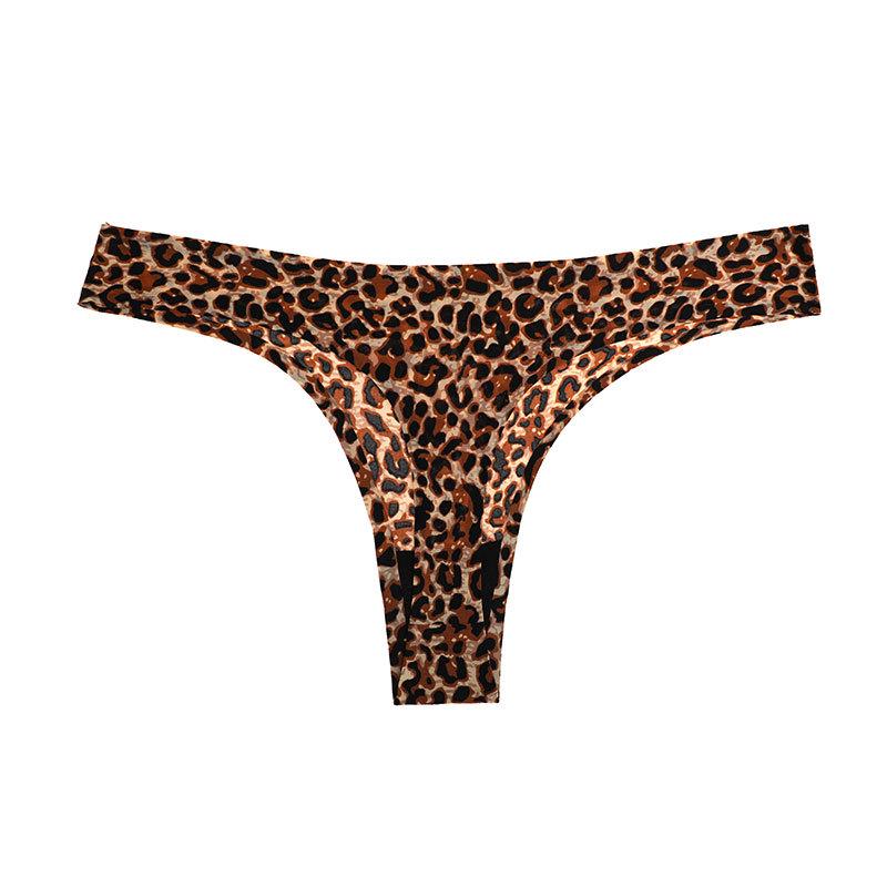 Бесшовные трусики из ледяного шелка, цельные трусы, женское нижнее белье, трусы с низкой талией, сексуальные стринги с леопардовым принтом, женские трусики-бикини T