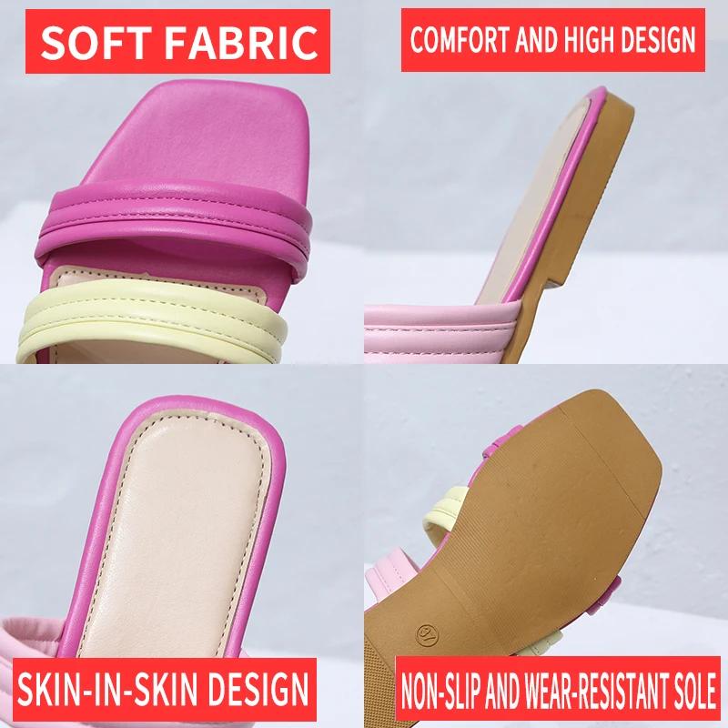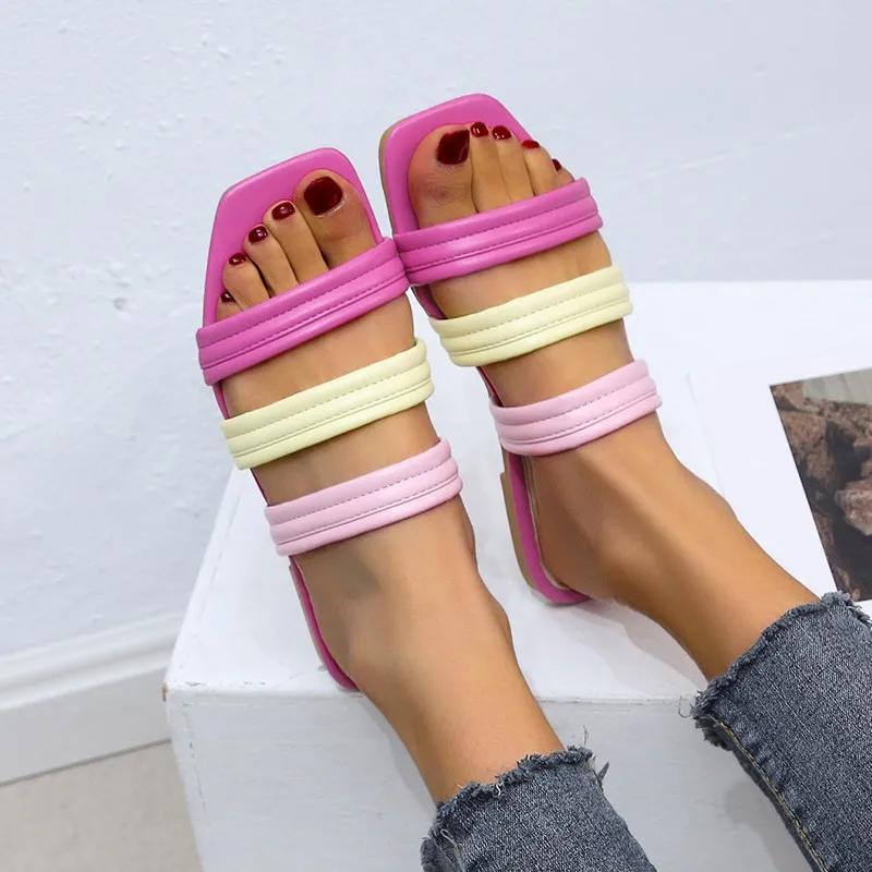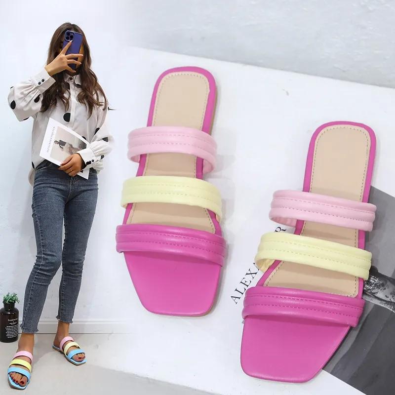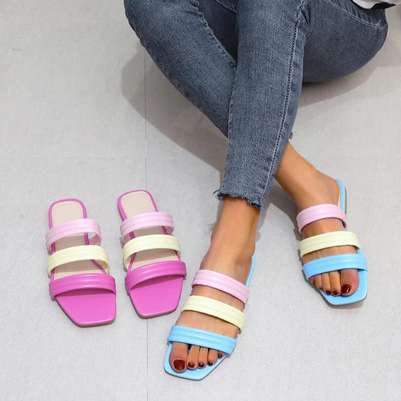 Модная обувь Женские тапочки Цветные пляжные тапочки на плоской подошве Плоские тапочки Женские сандалии Zapatillas Mujer