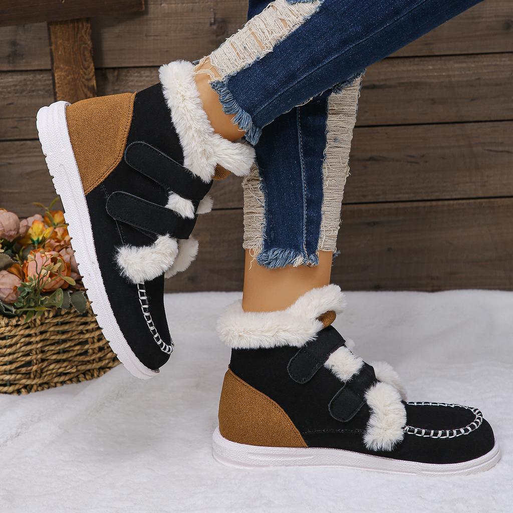 Модные лоскутные плюшевые подкладки на плоской подошве женские ботильоны большого размера 43 цветные блоки с круглым носком теплые женские ботинки