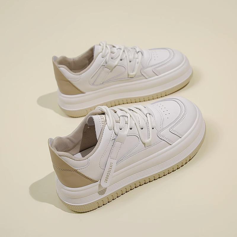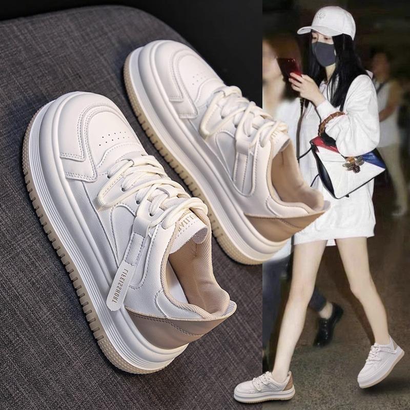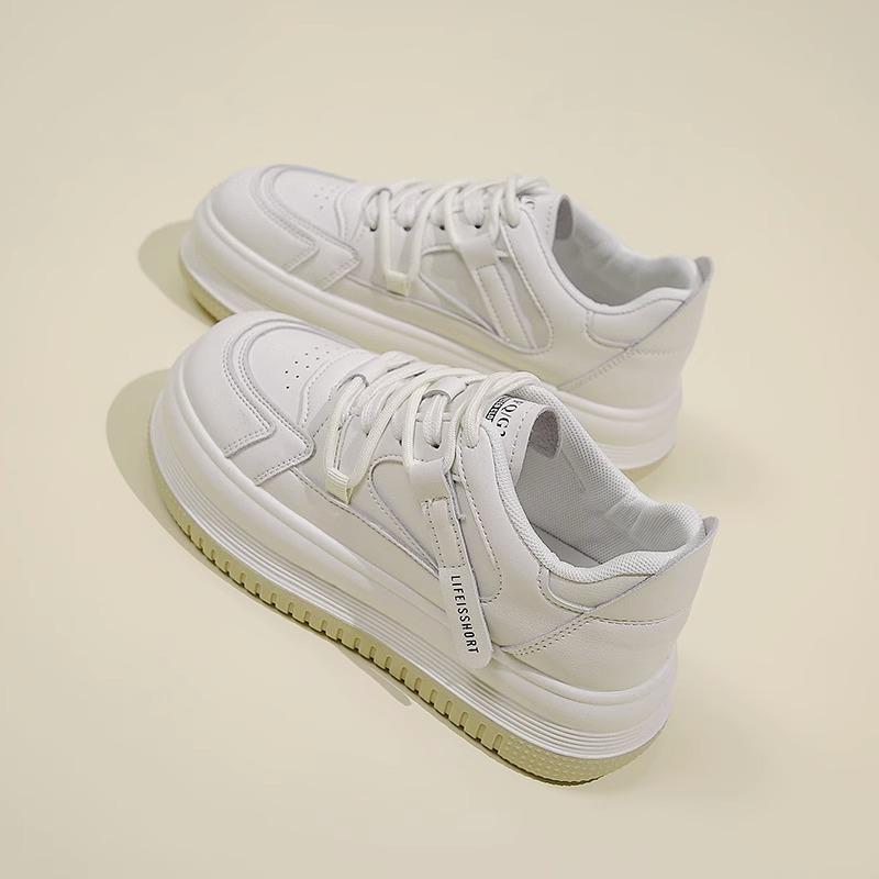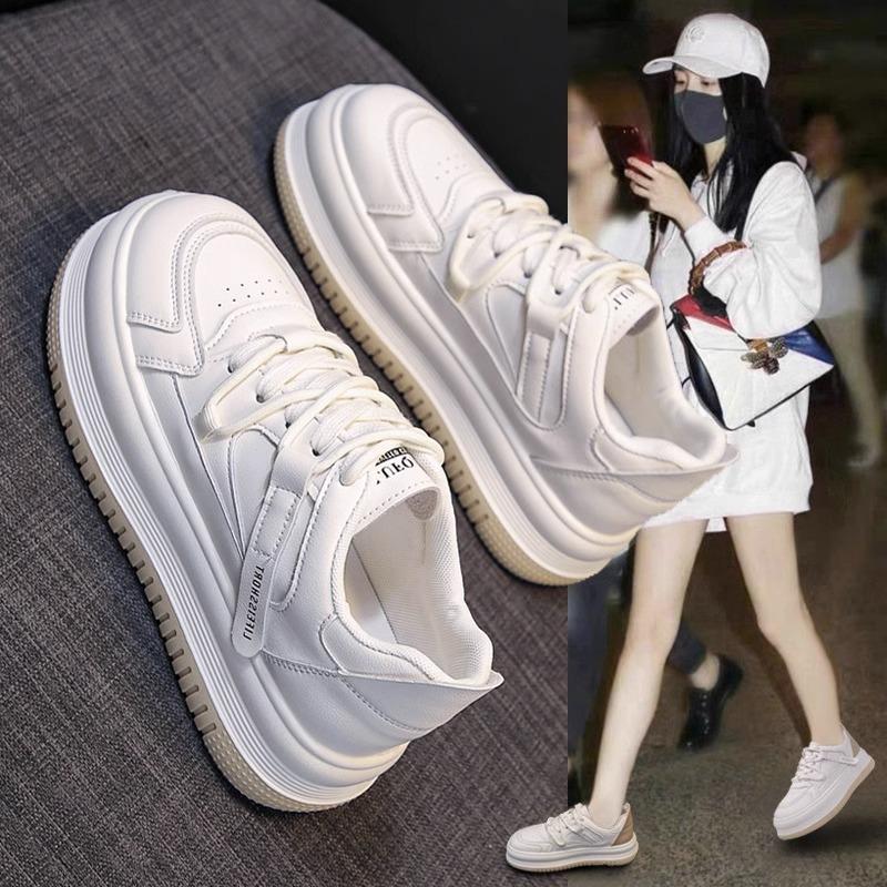 Модные женские кроссовки из натуральной кожи с толстой подошвой, маленькие белые, 2024 новинка, с круглым носком, универсальная спортивная и повседневная обувь