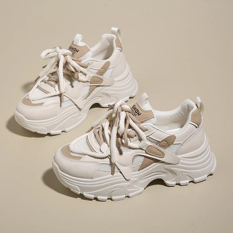 Модные кроссовки SYTK для женщин Модная платформа Клиновидная подошва Шнуровка Повседневные папины кроссовки Сетчатые дышащие Нескользящие для ходьбы Шоппинга Тенниса