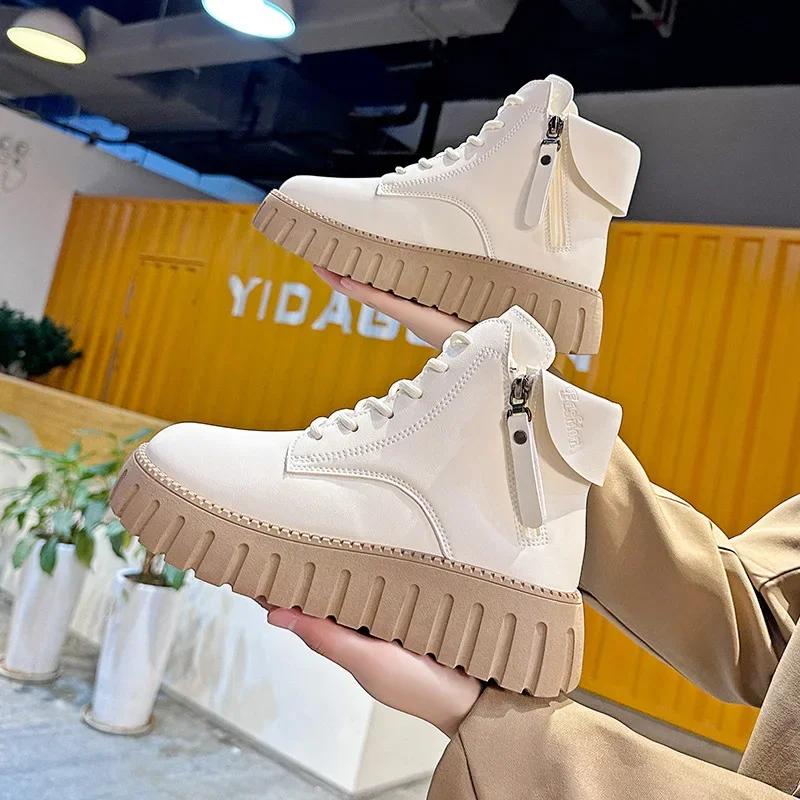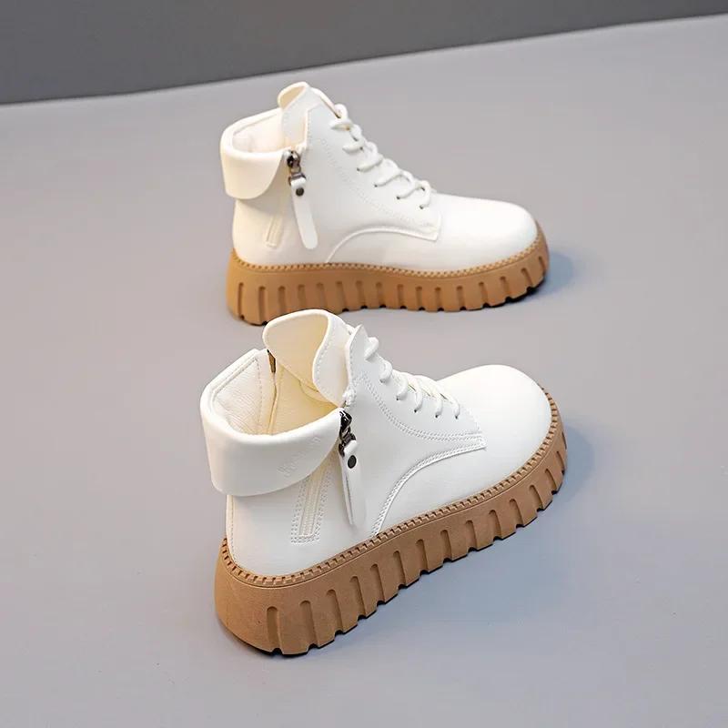 Модные женские туфли с толстым дном и высоким верхом 2024 года, весна-осень, новый стиль, универсальные студенческие спортивные белые туфли, модные повседневные туфли