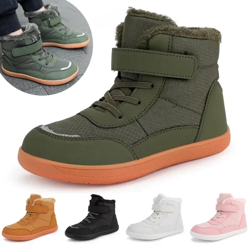 Модные детские зимние ботинки для малышей/маленьких/больших детей, зимние теплые хлопковые ботинки для мальчиков и девочек, детские зимние ботинки с широким носком для босых ног