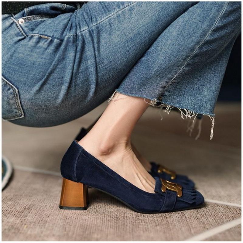 Мода 2024 года, новые женские туфли-лодочки из искусственной замши с кисточками на высоком каблуке, металлические туфли-лодочки на каблуке с деревянным зернистым узором, офисные туфли — купить товар онлайн с бесплатной доставкой по всему миру!