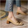 Мода 2024 года, новые женские туфли-лодочки из искусственной замши с кисточками на высоком каблуке, металлические туфли-лодочки на каблуке с деревянным зернистым узором, офисные туфли