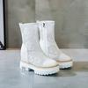 Модные модные роскошные белые кружевные сапоги женские летние высокие сапоги женские повседневные туфли на плоской платформе Botas De Mujer