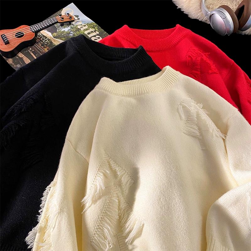 2024 Лоскутный вязаный свитер тренд High Street осень зима теплые мужские топы хип-хоп уличная одежда мужской пуловер