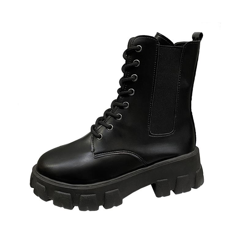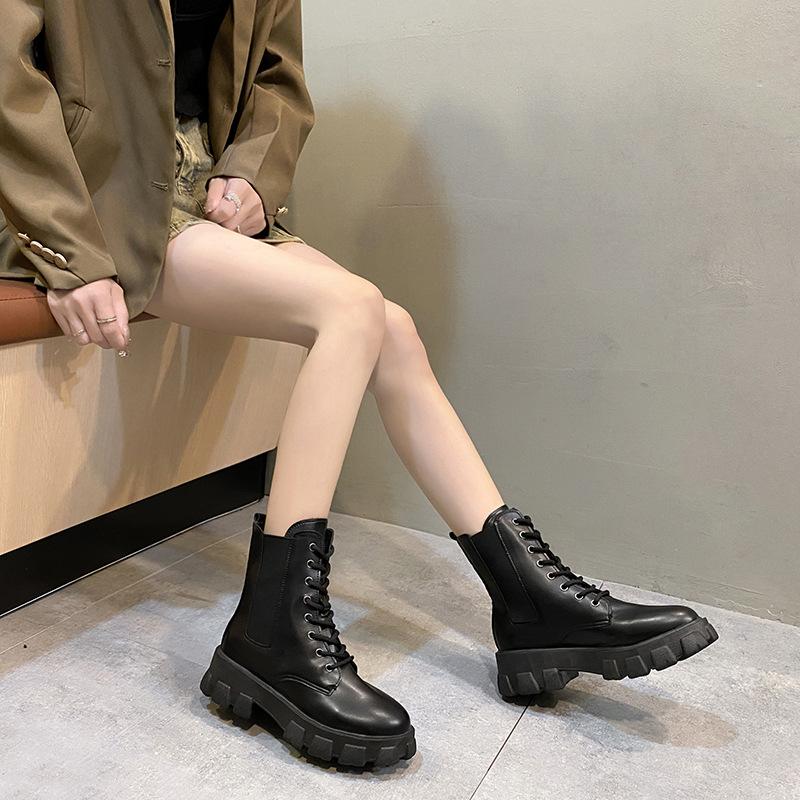 Модные новые черные короткие ботинки в британском стиле с толстой подошвой и толстым каблуком для весны и осени, классическая повседневная женская обувь.