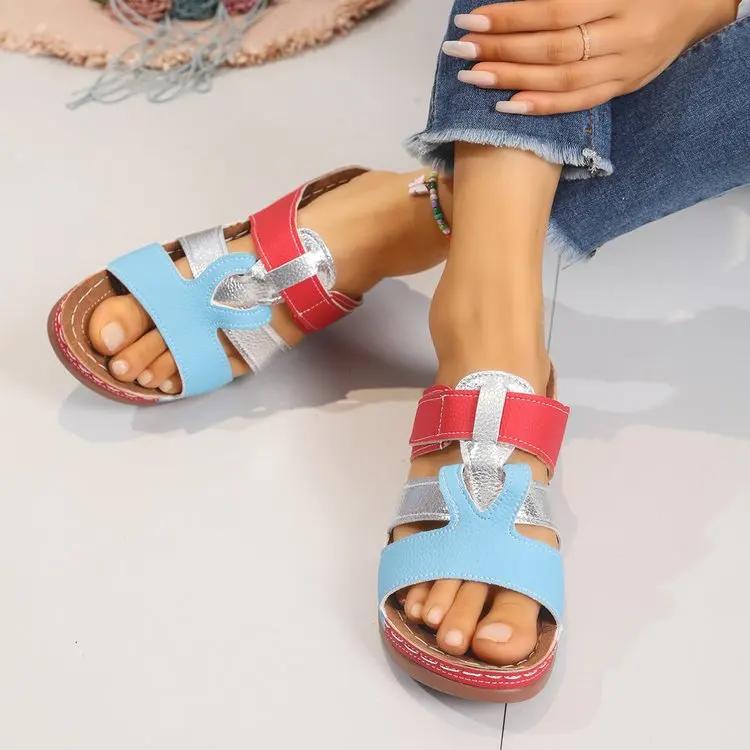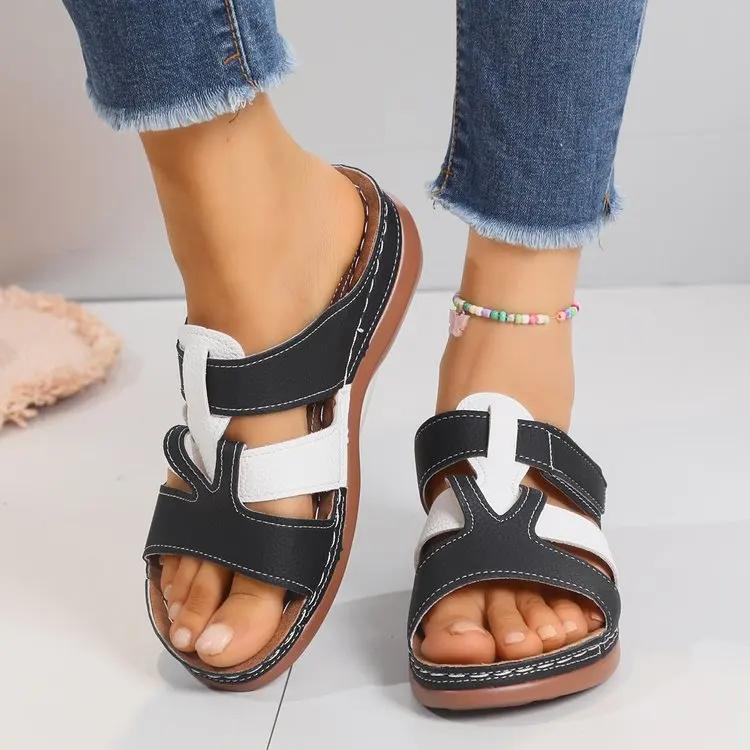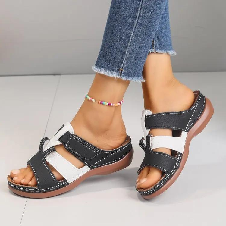 Модные женские летние туфли с открытым носком, новые удобные босоножки на танкетке для женщин, повседневные тапочки на платформе больших размеров для женщин, простой стиль
