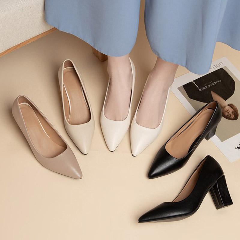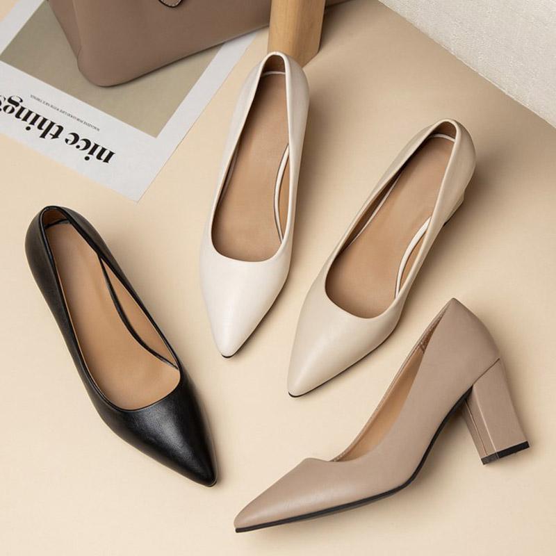 Модные женские туфли на высоком каблуке, туфли-лодочки с острым носком, женские белые свадебные туфли на квадратном каблуке 35-41