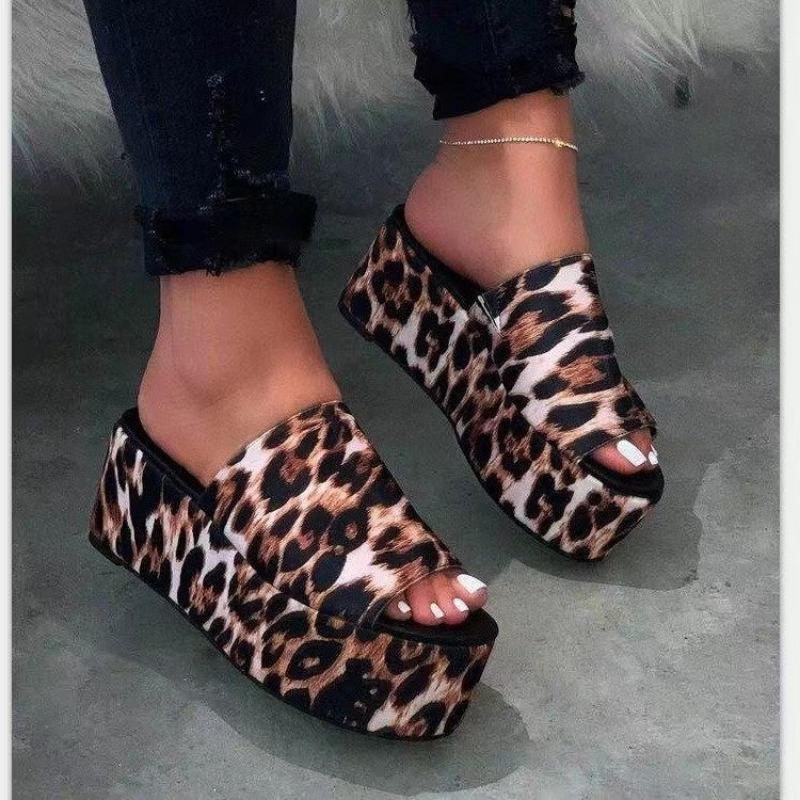 Мода 2024 года, новая модная женская обувь на распродаже, сексуальные женские тапочки с леопардовым принтом, летние уличные повседневные женские босоножки на толстой подошве
