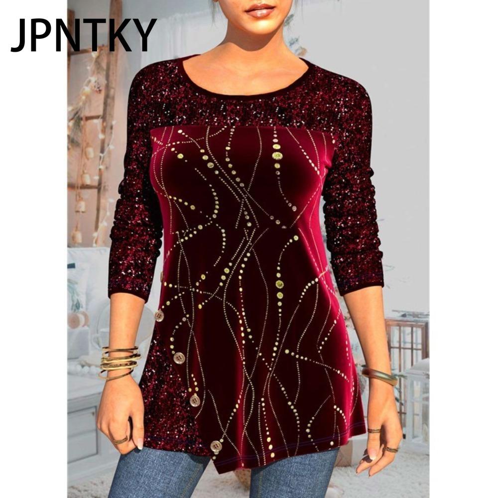 JPNTKY Женская мода Повседневная осень-зима Однотонные принты Длинные рукава О-образный вырез Блузки и рубашки