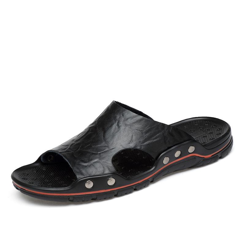 Модные летние шлепанцы Новые мужские сандалии Мягкие уличные шлепанцы Высококачественная натуральная кожа Удобные пляжные сандалии Уличная мужская обувь