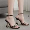 Модные летние туфли на высоком каблуке женские туфли-лодочки босоножки женские туфли женские босоножки на каблуке с открытым носком сексуальные вечерние черные туфли женские туфли со стразами