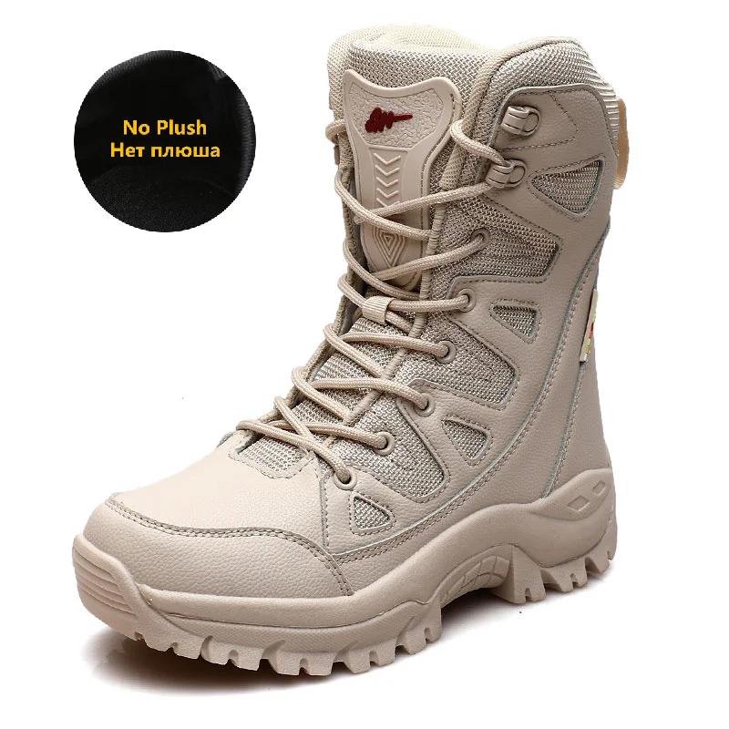 Модные зимние теплые плюшевые меховые зимние сапоги, водонепроницаемые кожаные мужские сапоги, уличные нескользящие рабочие ботинки, армейские ботинки для пустыни, мотоциклетные сапоги