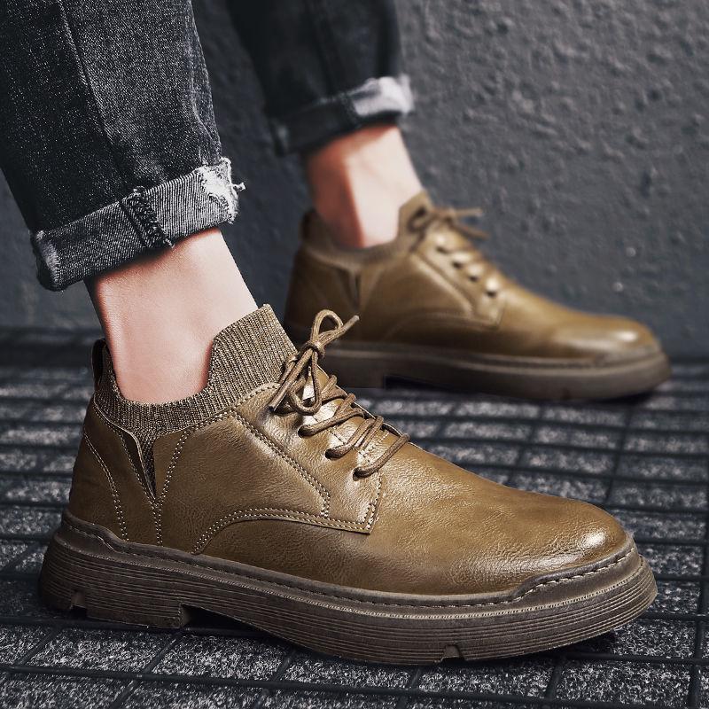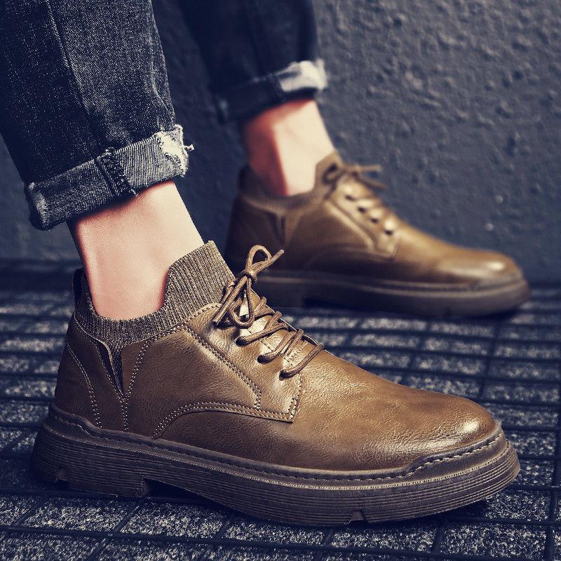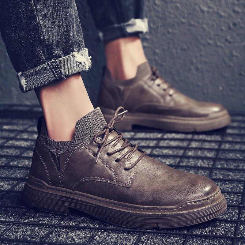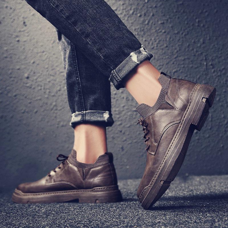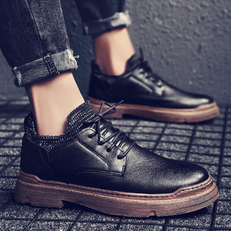 Модные весенние и осенние новые черные мужские кожаные ботинки в британском стиле, деловые мужские повседневные рабочие ботинки, однотонные мужские зимние ботинки