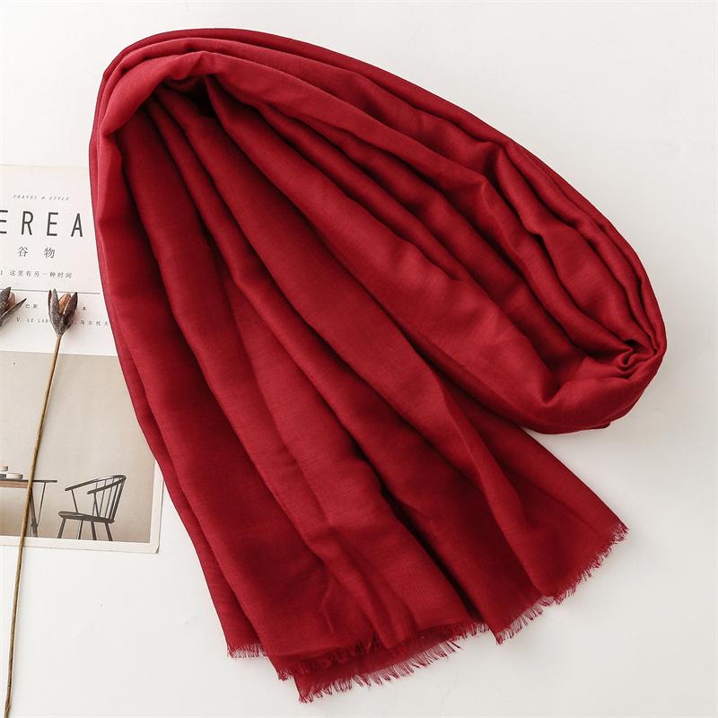 Четырехсезонный тонкий однотонный простой этнический стиль хлопок и лен шелковый шарф с теплыми краями, дорожная шаль для защиты от солнца, мягкий