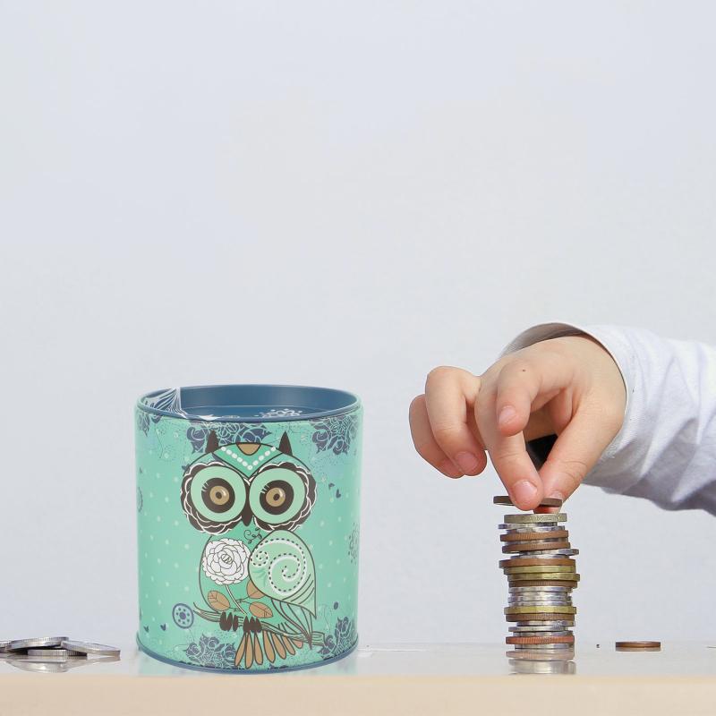 - Эта копилка, украшенная рисунком в виде мультяшной совы, очень привлекательна для детей и лучше всего завоевывает их расположение.