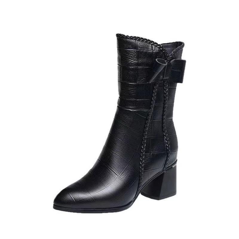 Модные зимние плюшевые теплые кожаные ботинки с бантом и круглым носком для женщин, повседневные нескользящие ботинки с заостренной молнией, женские ботинки — купить товар онлайн с бесплатной доставкой по всему миру!