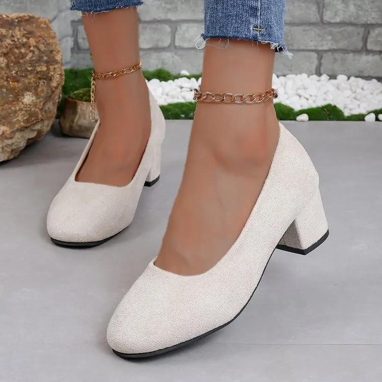 Мода 2024 Весна Осень Мода Высокий Каблук Неглубокий Носок Удобные Сапатос Пара Женские Повседневные Карьера Большие Размеры Рабочая Обувь Теннис