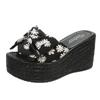 Модные летние тапочки 2024 года, женские, новые, с бантом и фрагментированным цветочным узором, тканевое лицо, удобные, большого размера, модные женские тапочки