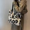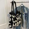 Сумка через плечо с буквенным принтом, большая вместительная сумка контрастного цвета из хлопчатобумажной ткани, летняя модная вязаная сумка ручной работы