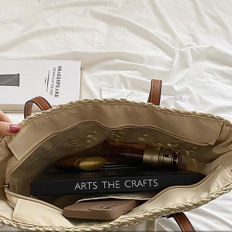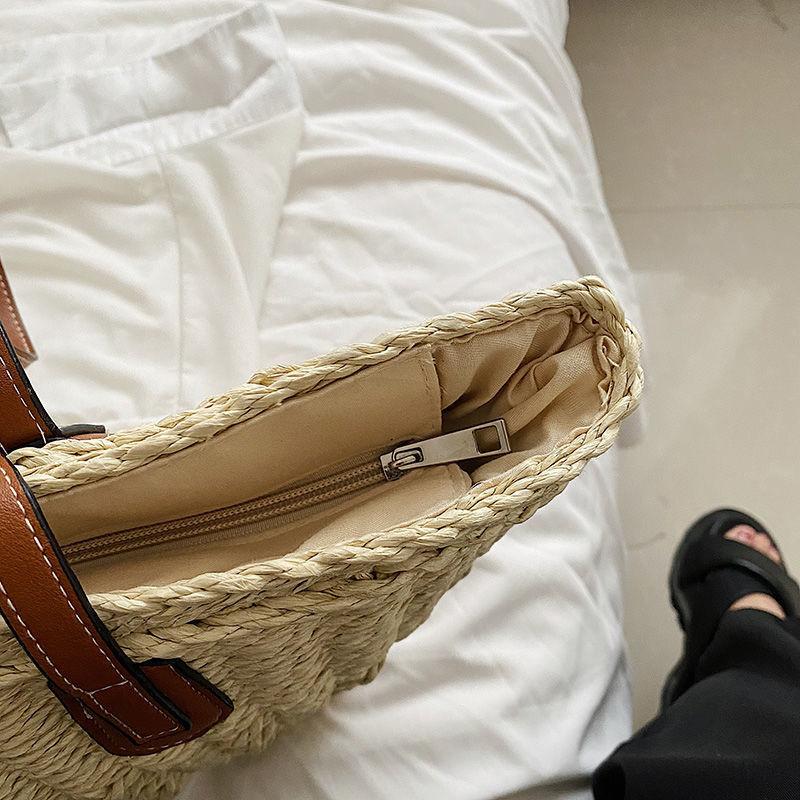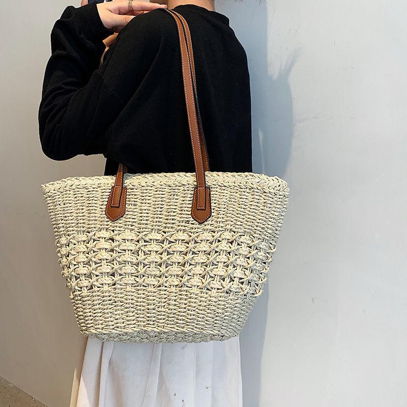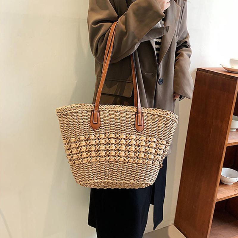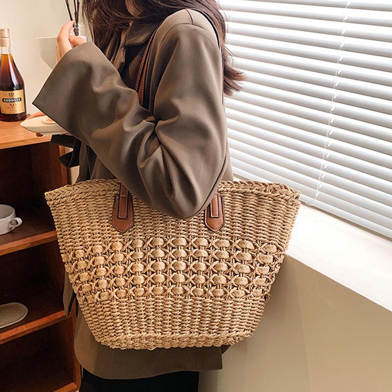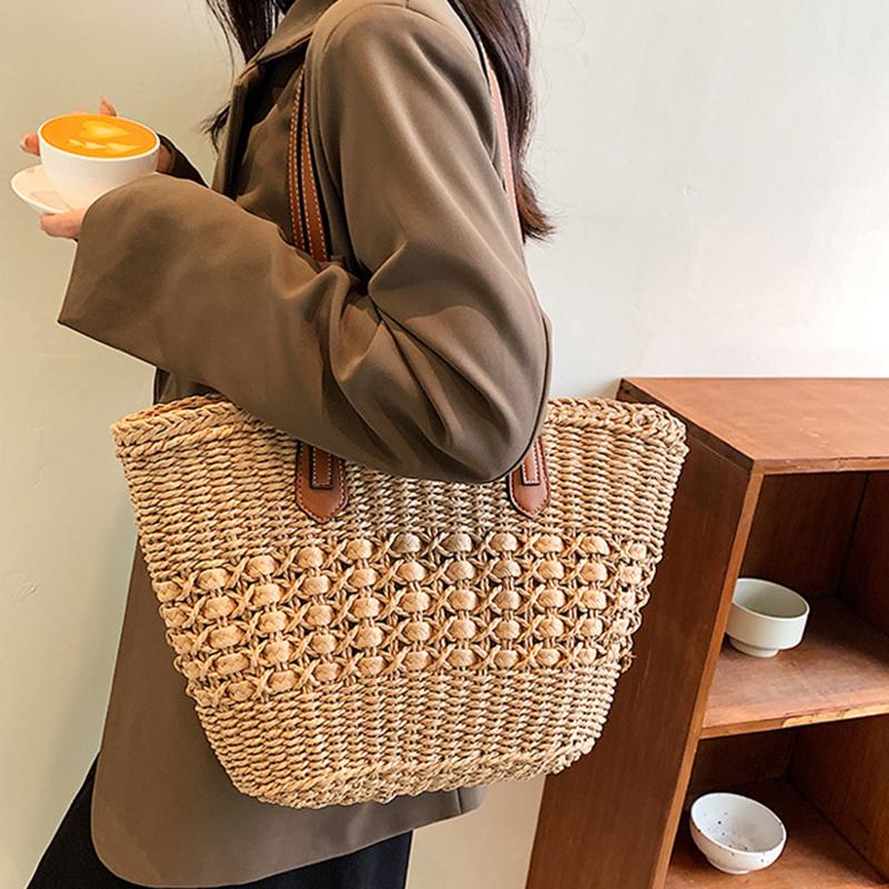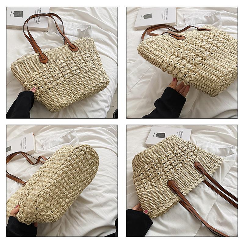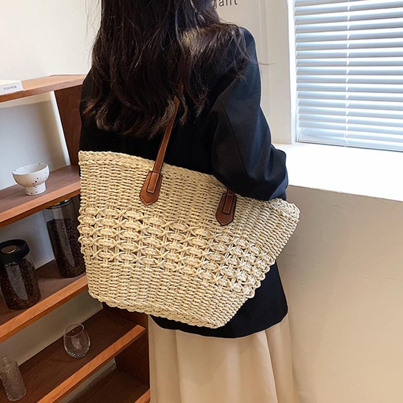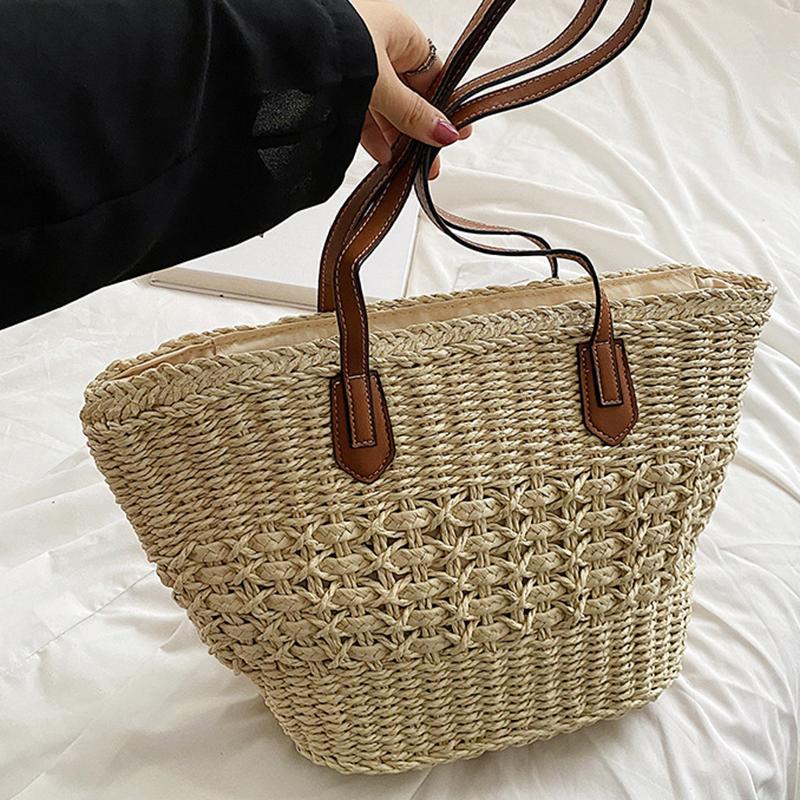Женская летняя соломенная тканая сумка через плечо с ручкой сверху, модная пляжная большая вместительная вязаная сумка-тоут для покупок
