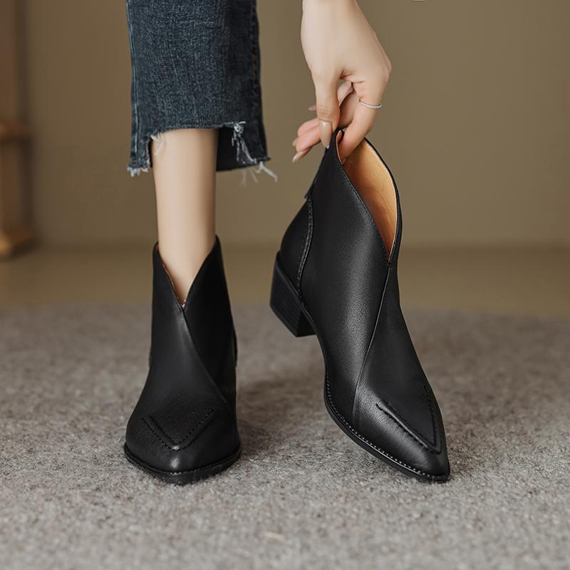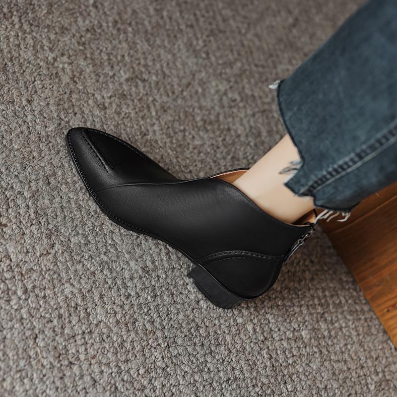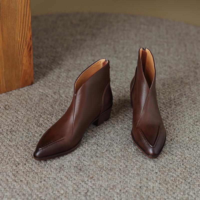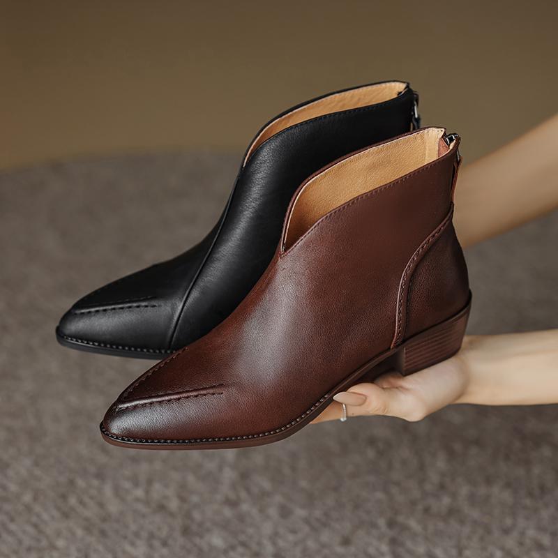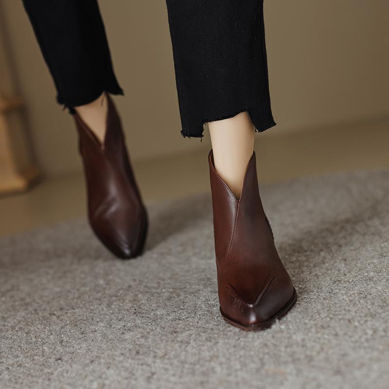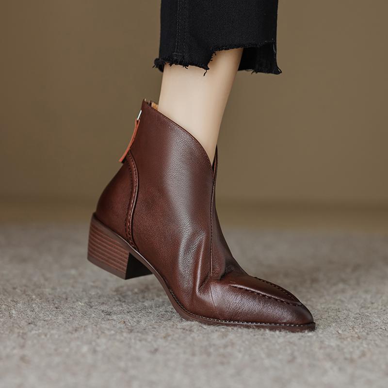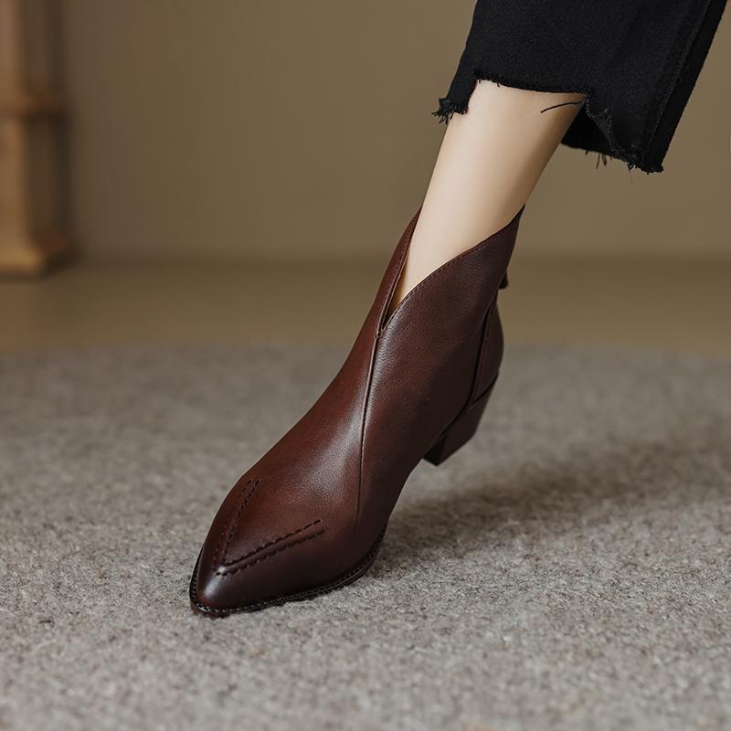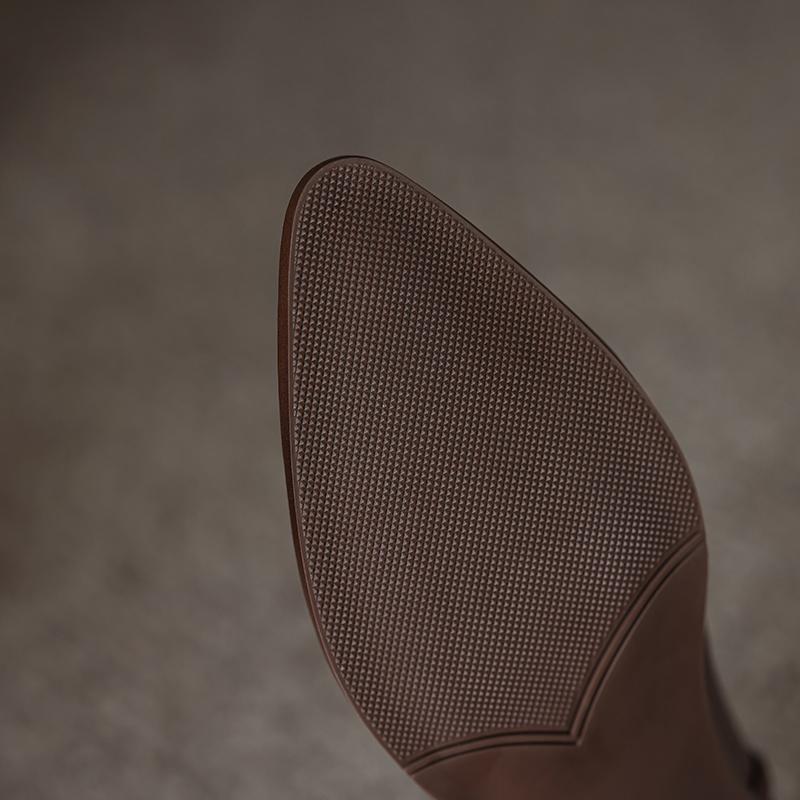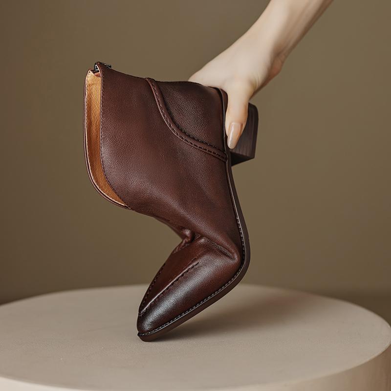 Туфли Qirui Острые толстые каблуки Элегантный ретро Верхний слой из коровьей кожи