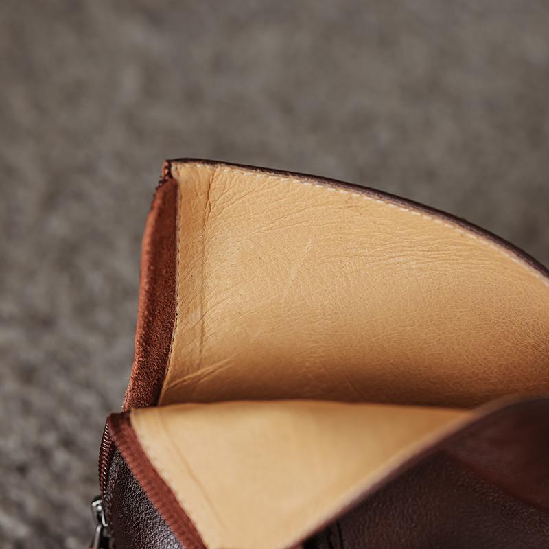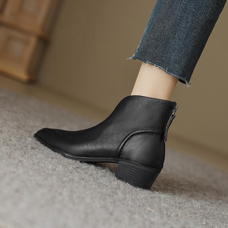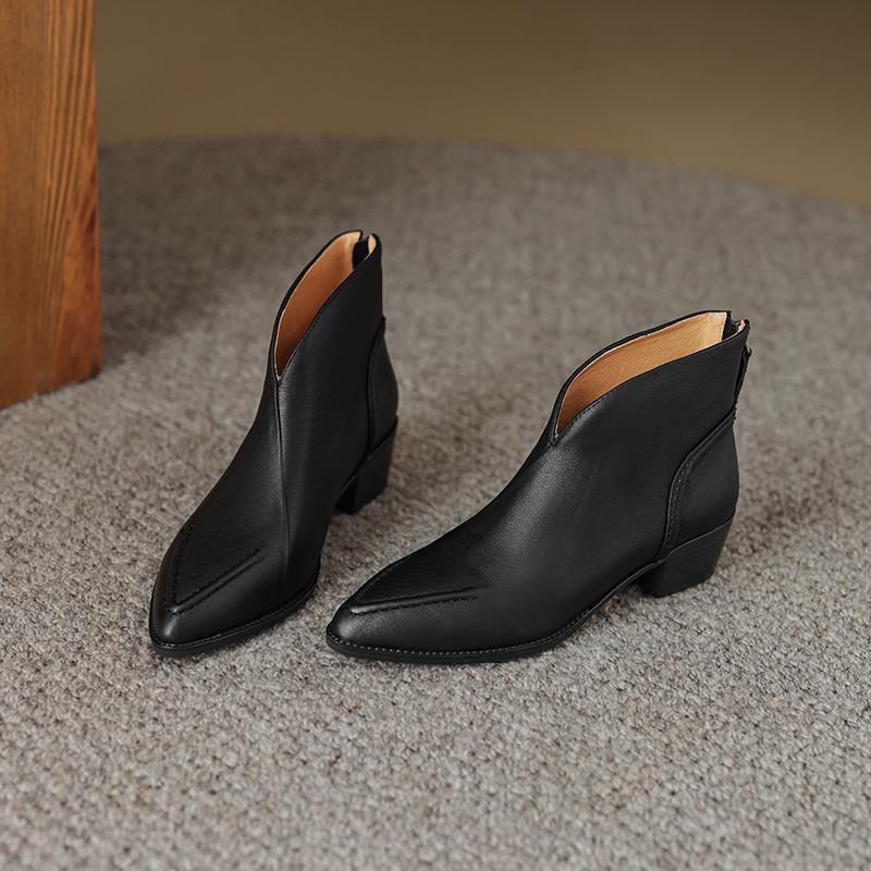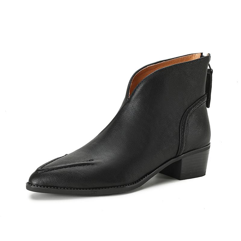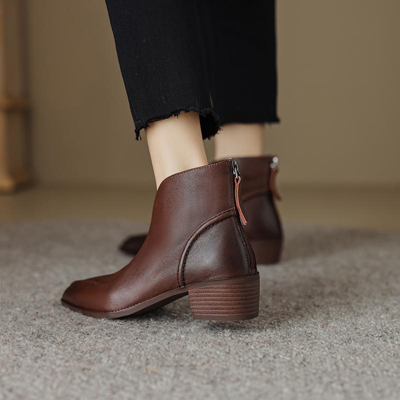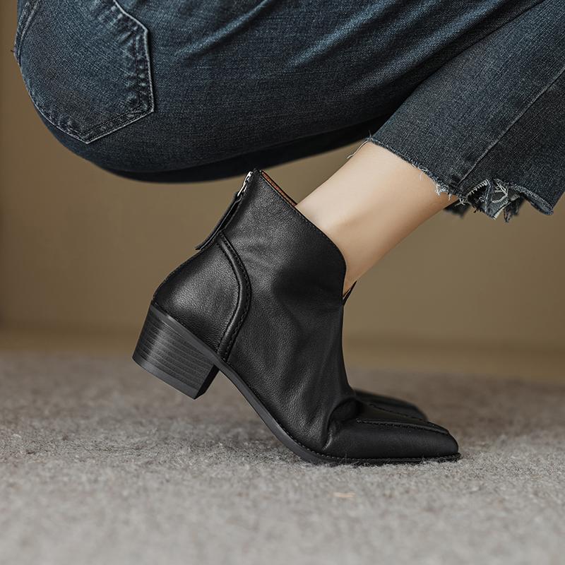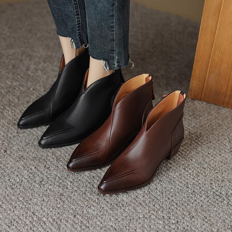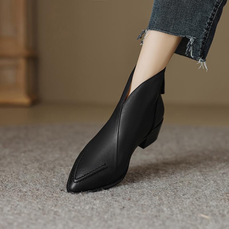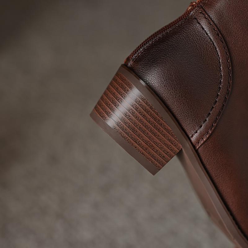 Туфли Qirui Острые толстые каблуки Элегантный ретро Верхний слой из коровьей кожи