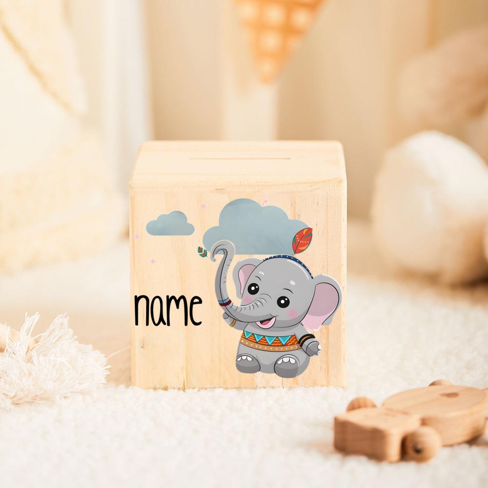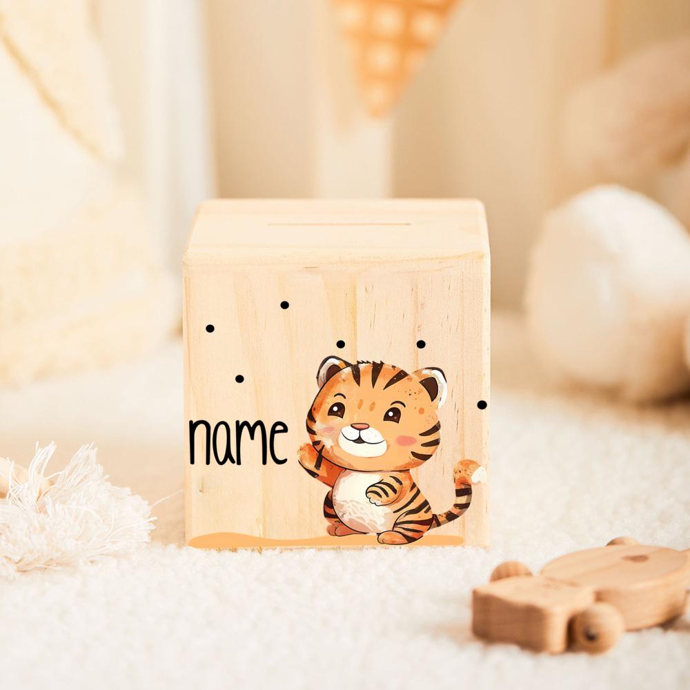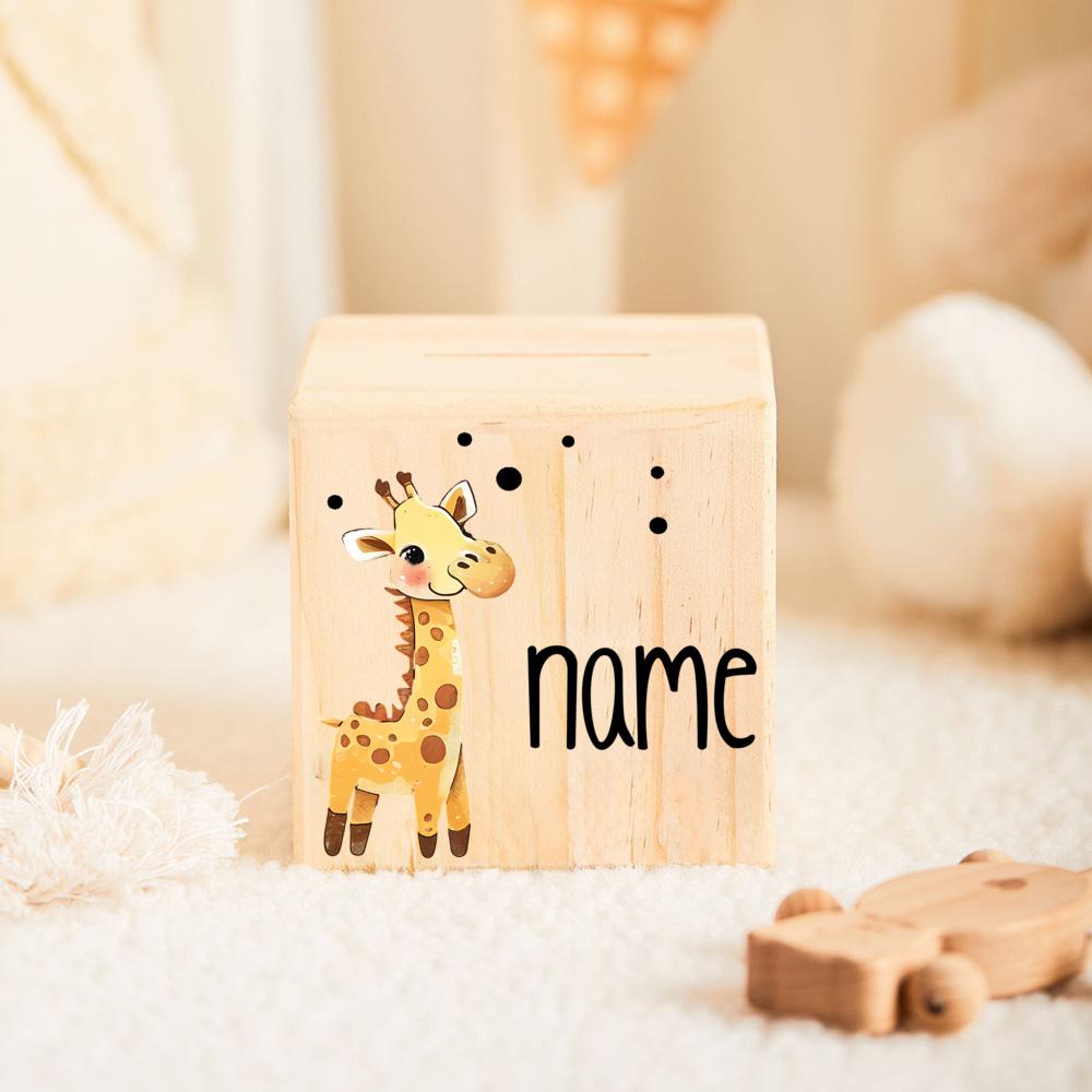 Детская копилка с именем на заказ, Персонализированная деревянная коробка для денег, Милый животный узор, Коллекционная коробка, Подарки для новорожденного