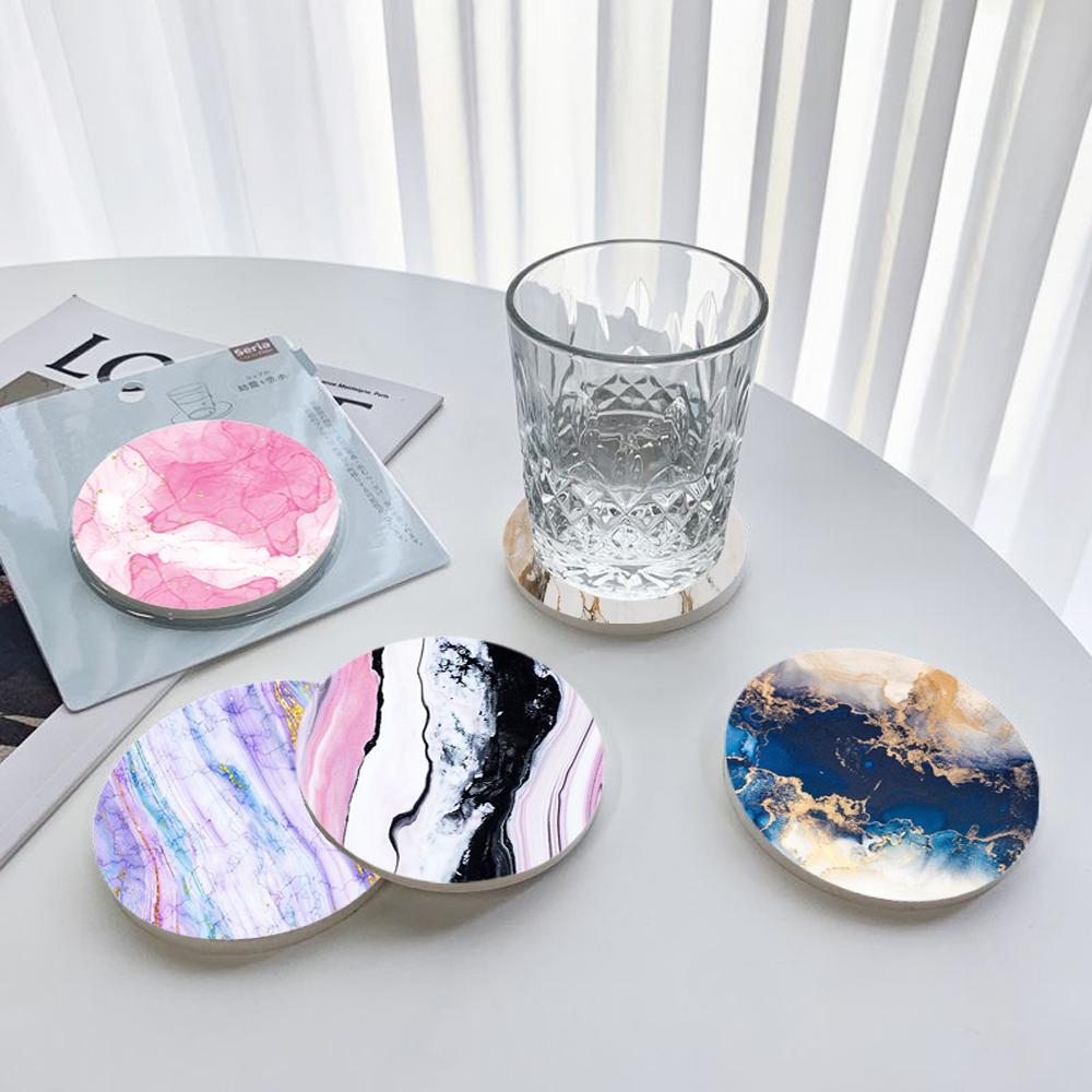 Мраморный впитывающий круглый керамический камень для декора бара, впитывающие напитки, керамические подставки, коврик в подарок на новоселье и пробковое основание