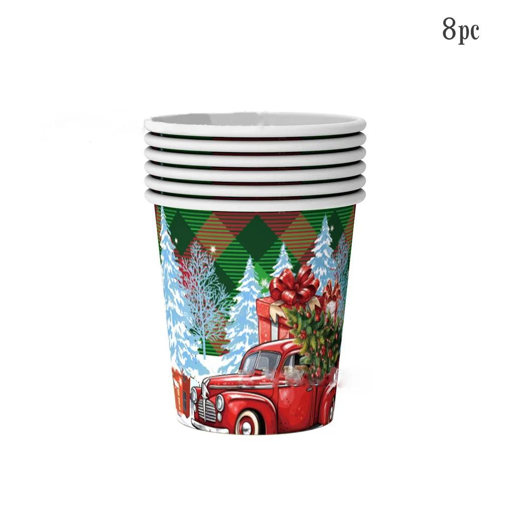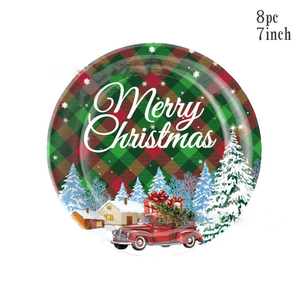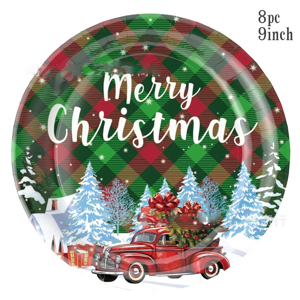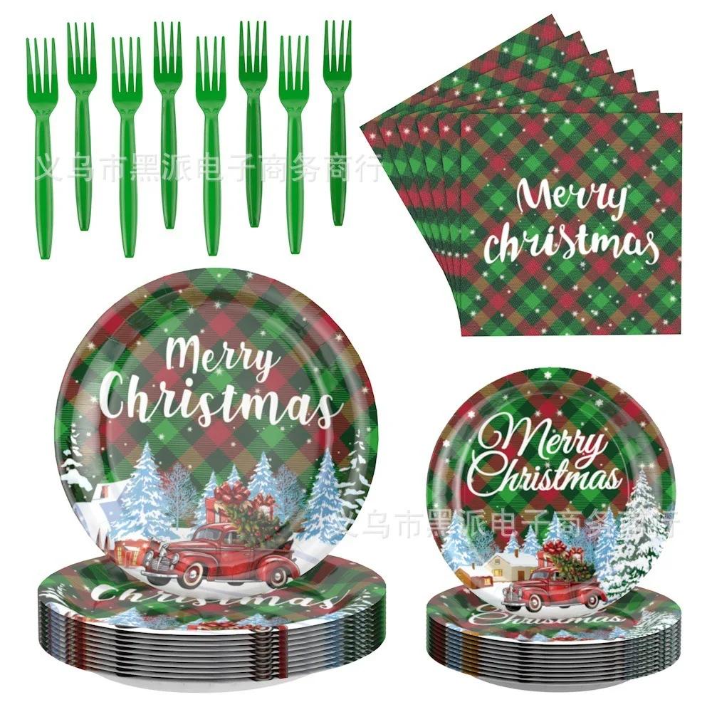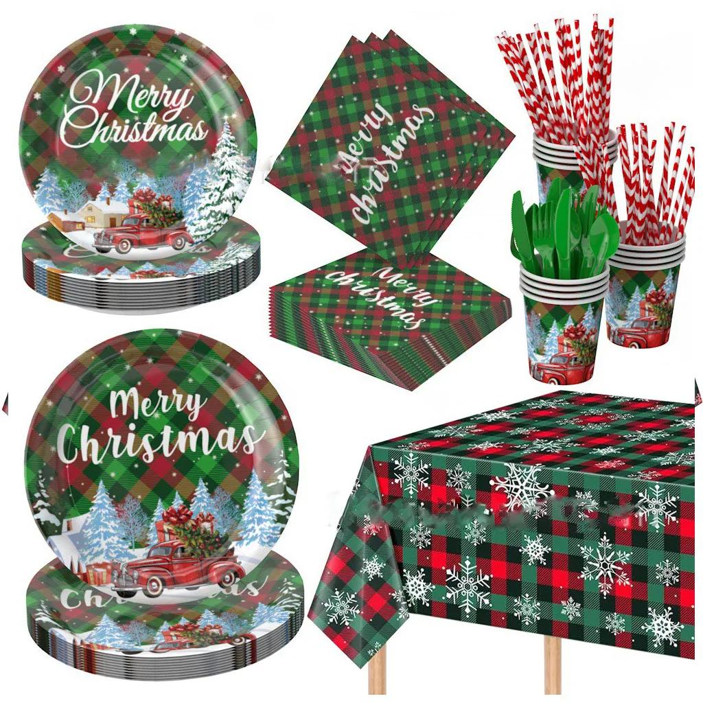 Рождественская красная зеленая решетка одноразовая посуда рождественская елка автомобиль подарок снежинка тарелки салфетки Ноэль Веселое рождественское украшение 2025