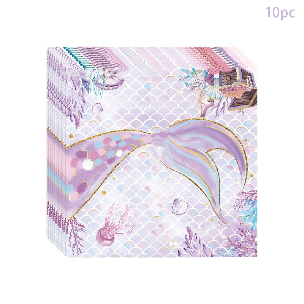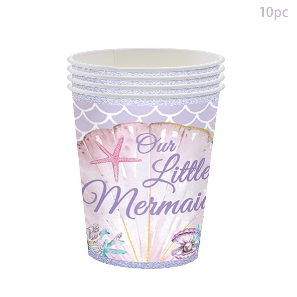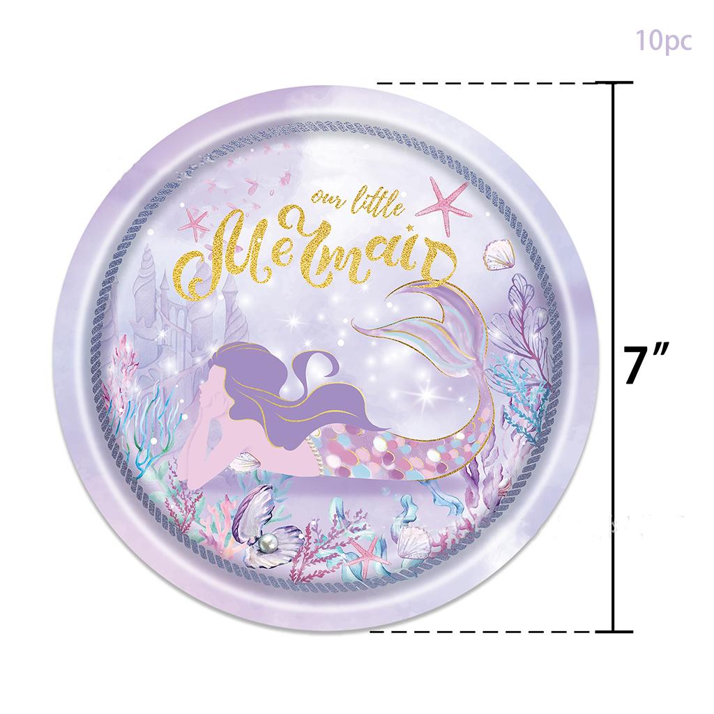 Набор одноразовой посуды «Фиолетовая русалочка» Наши тарелки, чашки, салфетки для маленьких русалок для детей и девочек Товары для вечеринки по случаю дня рождения «Счастливая русалочка»