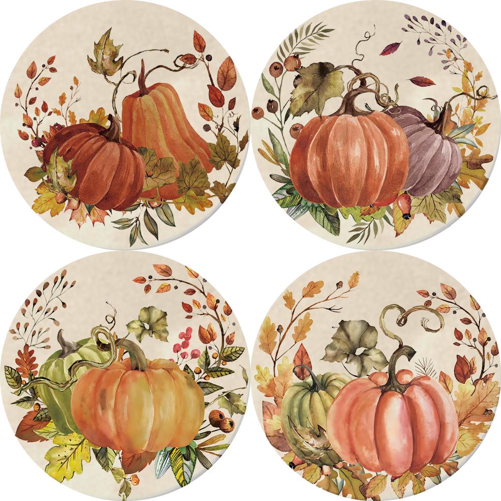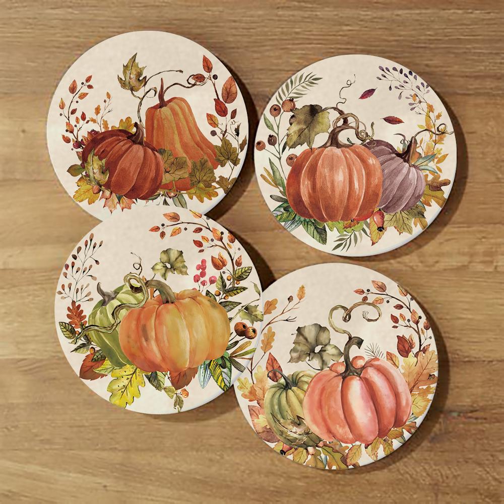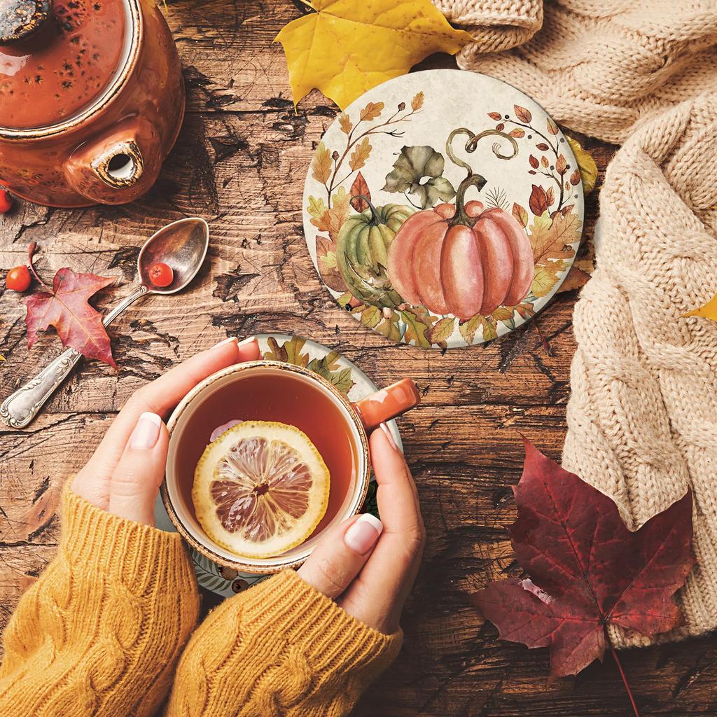 Подставка под стакан для осеннего Дня благодарения, винтажная подставка под стакан с тыквенными листьями, впитывающая подставка из натуральной керамики, коврик под стакан в стиле ретро