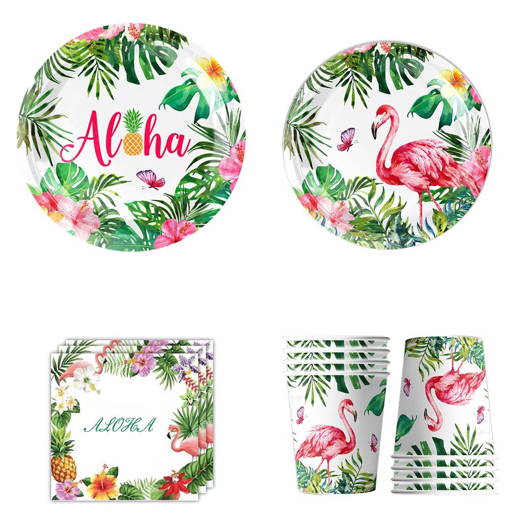 Гавайская вечеринка с фламинго, одноразовая посуда, тропические тарелки, салфетки, чашки, вечеринка с фламинго для девочек на день рождения