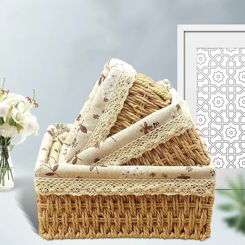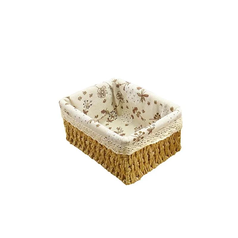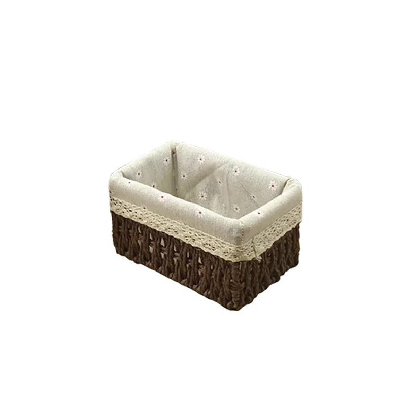 Коробка для хранения косметики, плетеная из искусственной соломы, плетеная из лозы, корзина для хранения украшений в пасторальном стиле, корзина для хранения