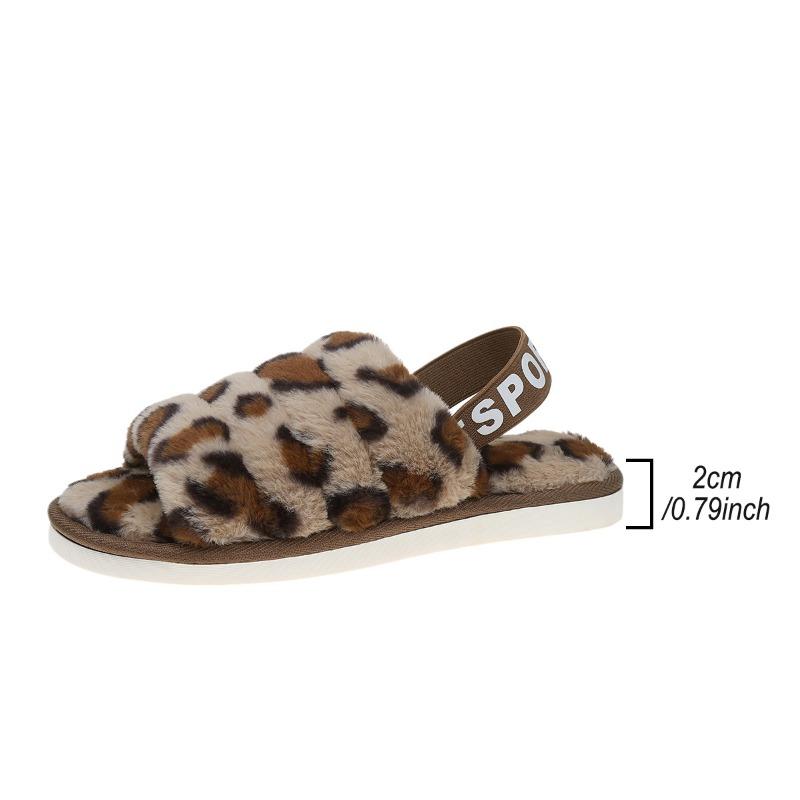 Модные плюшевые сандалии с леопардовым принтом для женской обуви Модные туфли на плоской подошве Ретро-туфли на плоской подошве Пушистые повседневные туфли Женские сандалии с открытым носком