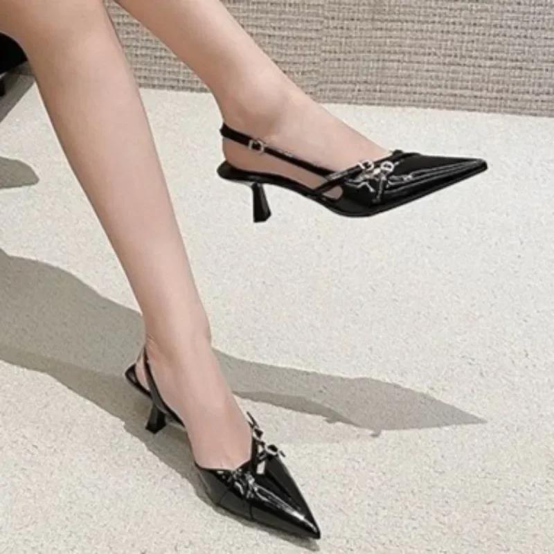 Модные женские босоножки 2024 года, новые модные летние брендовые дизайнерские босоножки на низком каблуке, сексуальные с острым носком, из искусственной кожи, однотонные туфли для вечеринок — купить товар онлайн с бесплатной доставкой по всему миру!