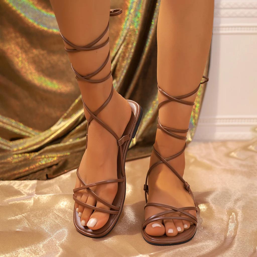Модные сандалии женские летние новинки 2024 года, пляжная мода, сексуальные плоские повседневные туфли с открытым носком и перекрестными шнурками, узкие туфли в стиле феи, черные римские сандалии