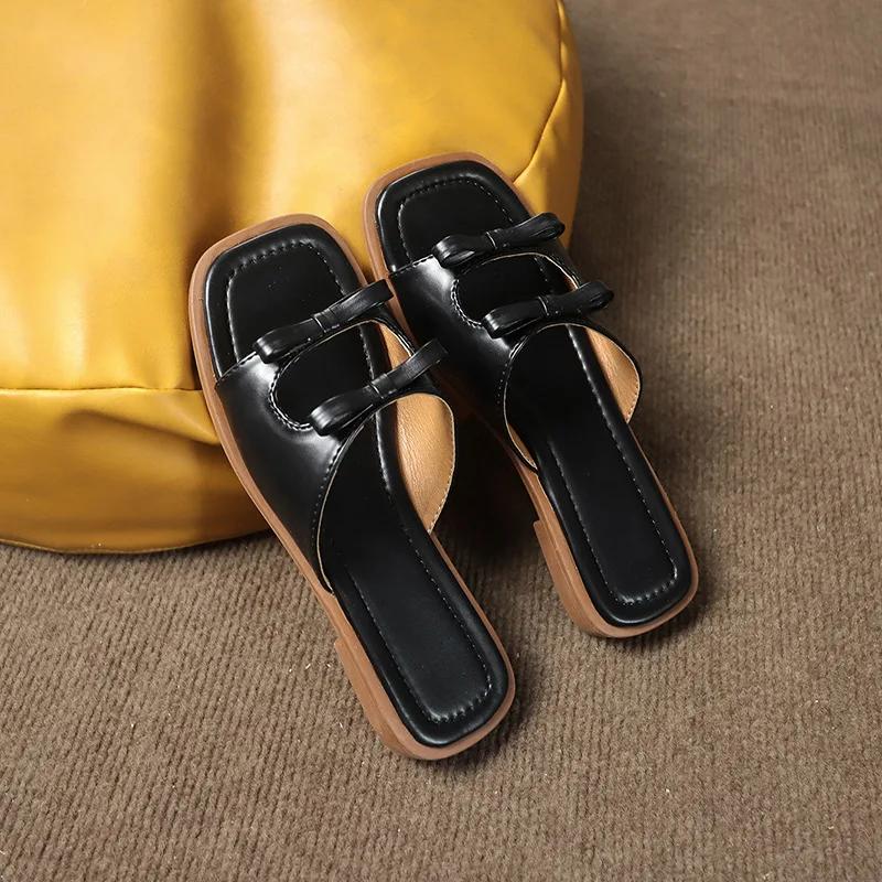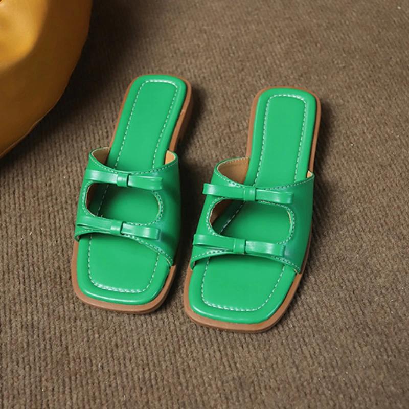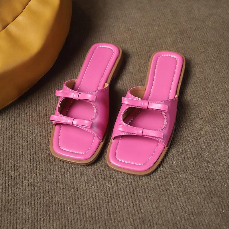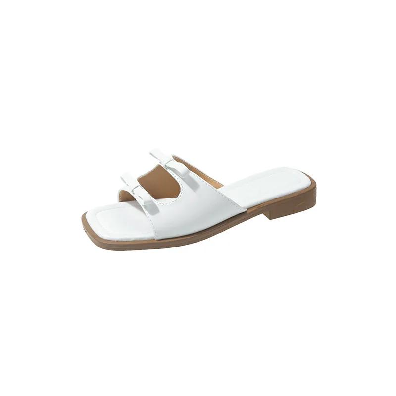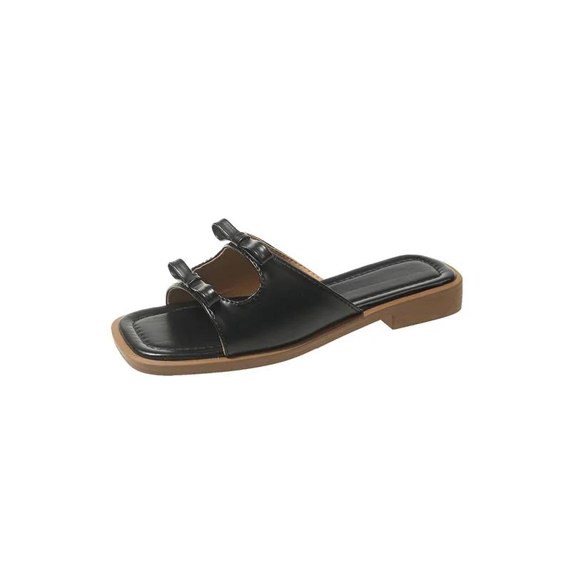 Мода 2024 года, лето, новый стиль, модные, удобные, квадратные, бантовые, плоские тапочки для женщин, повседневные, пляжные сандалии, женские, Zapatillas Mujer
