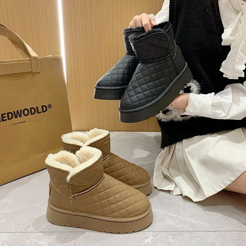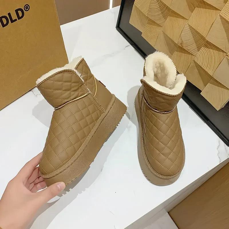 Модные зимние ботинки для женщин на платформе, зимние новые кашемировые теплые толстые подошвы без каблука, покрытые волосами, полутапочки из хлопка для женщин
