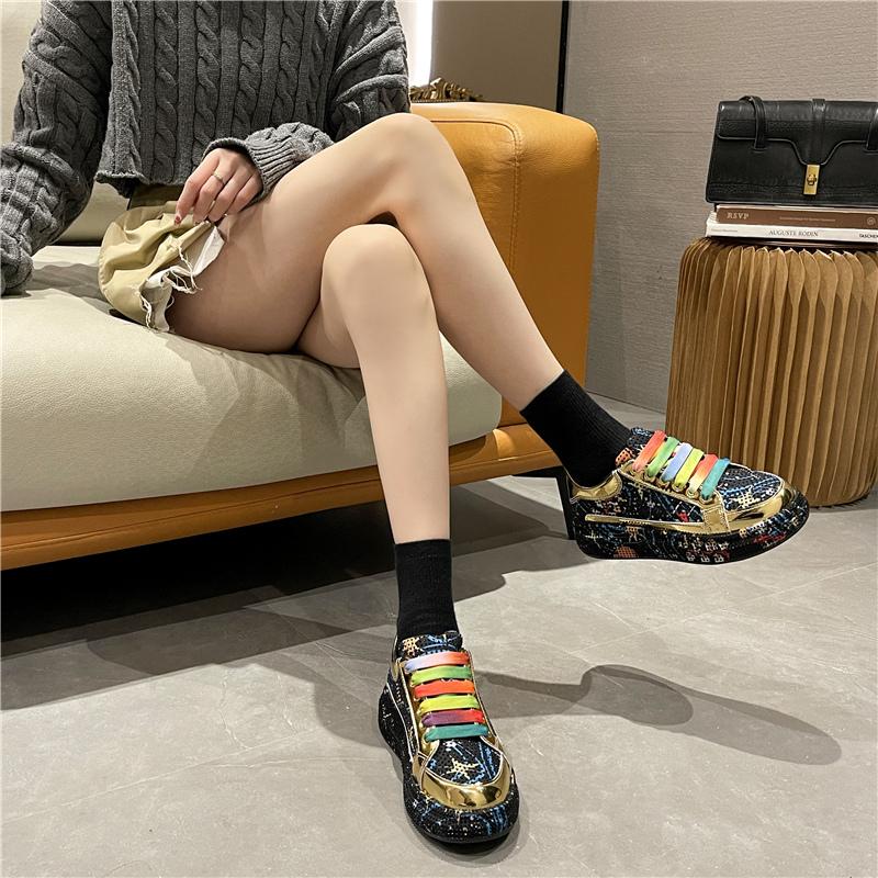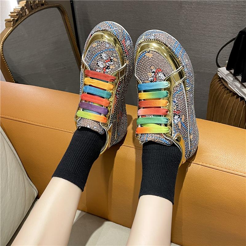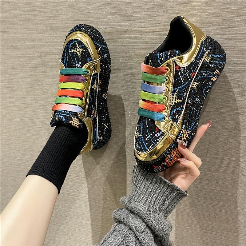Модные новые весенние женские кроссовки, модные спортивные туфли со стразами на толстой подошве для молодежи, школьные туфли, кроссовки на платформе с кристаллами и серебром