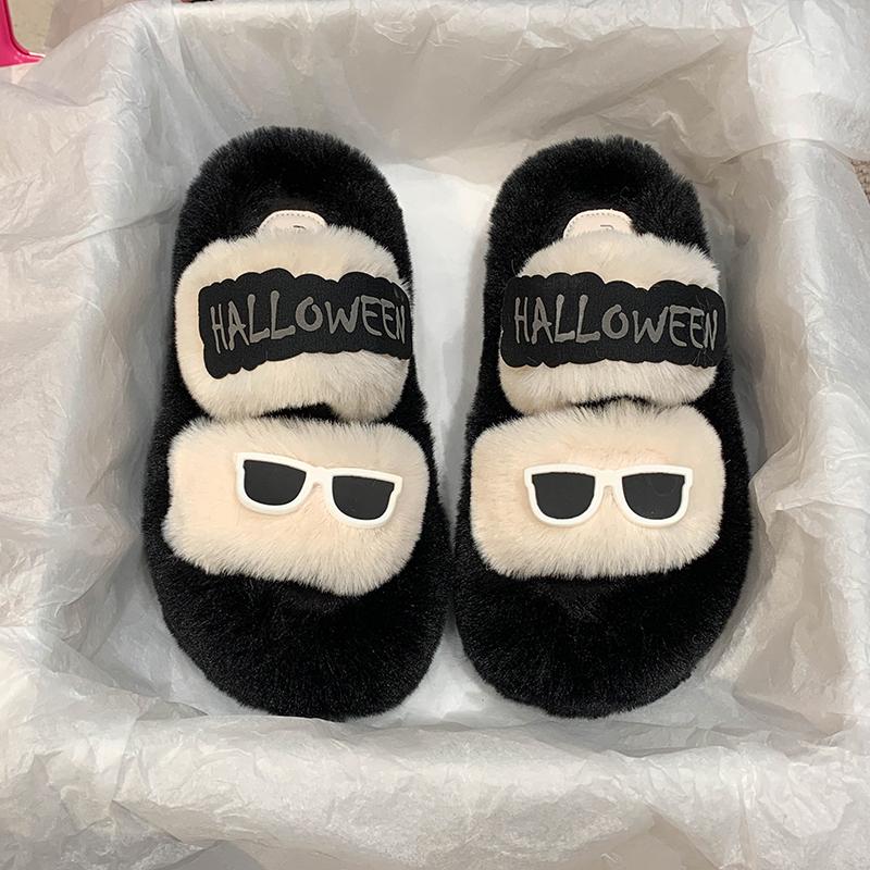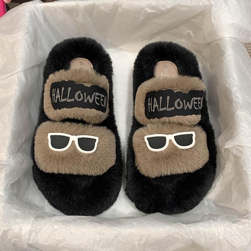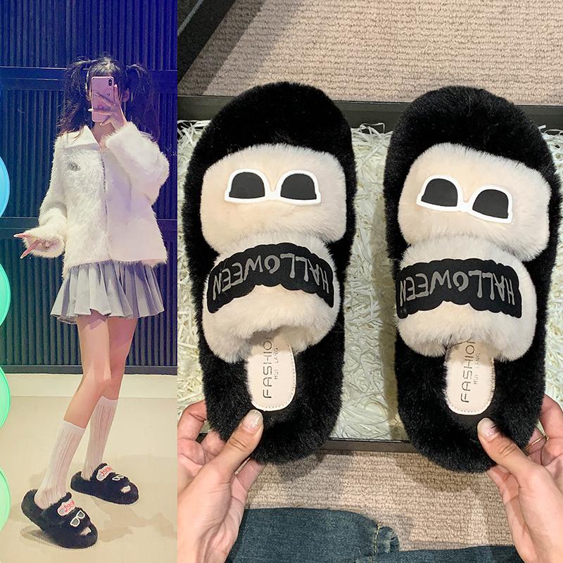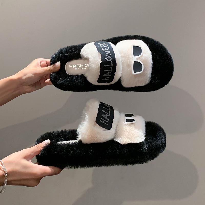 Модные милые удобные тапочки с рисунком для женщин 2024 года, осень-весна, новая домашняя шерстяная обувь, модные пушистые тапочки для женщин, обувь на среднем каблуке