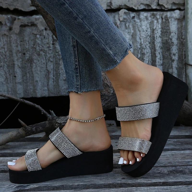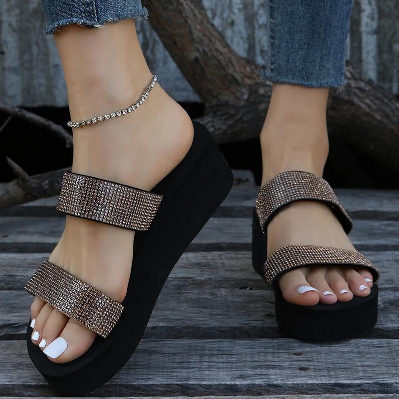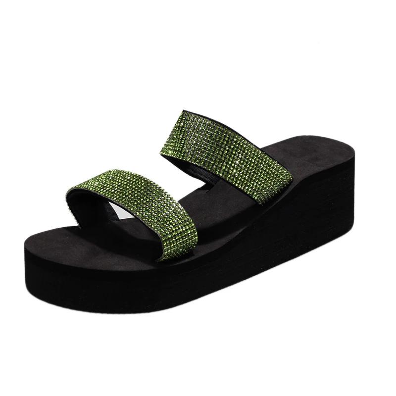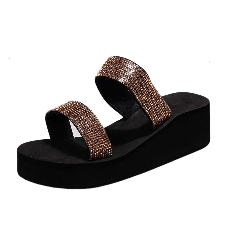 Модные женские толстые тапочки 2024 года, новый стиль, повседневная пляжная обувь со стразами, сандалии zapatos de mujer