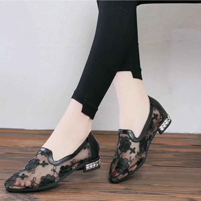 Мода 2024 Весна Осень Низкий Топ Повседневный Национальный Ветер Фея Леди Цветочная Вышивка Отверстие Воздухопроницаемая Сетка Низкий Каблук Одиночные Женские Туфли