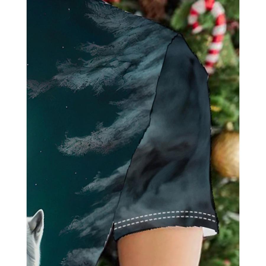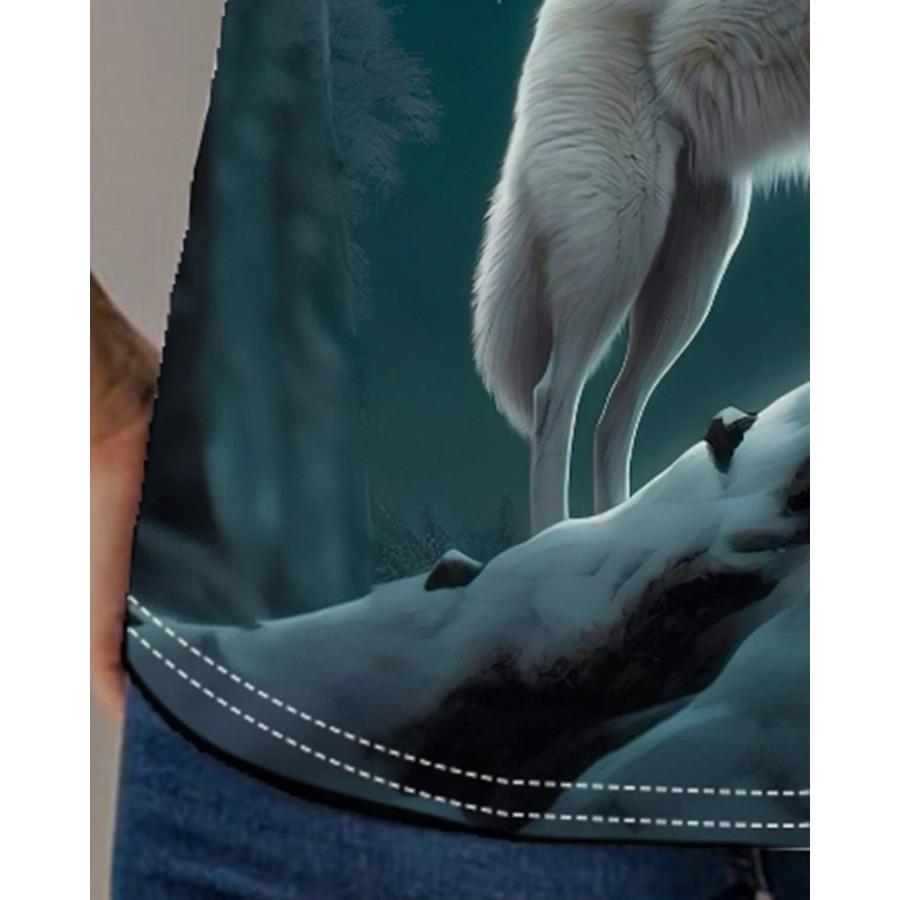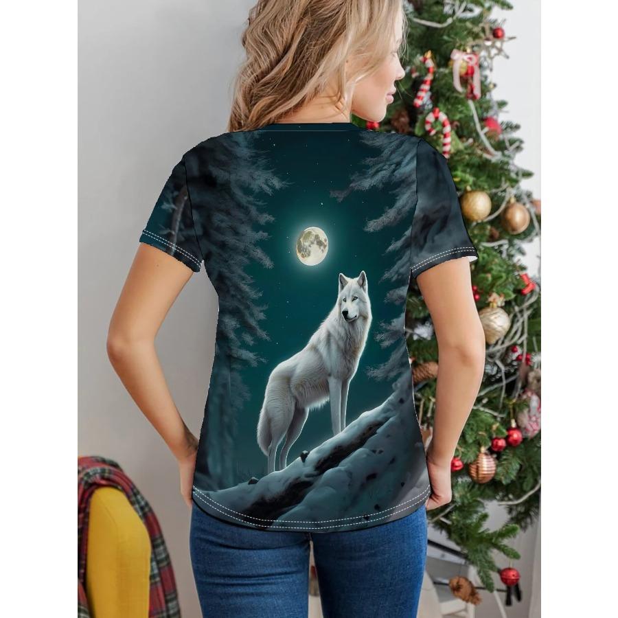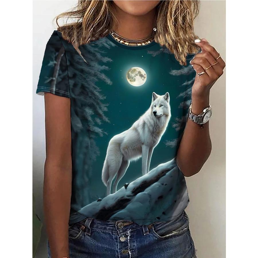 Футболка с принтом волка, повседневный топ с круглым вырезом и коротким рукавом на весну и лето, женская одежда