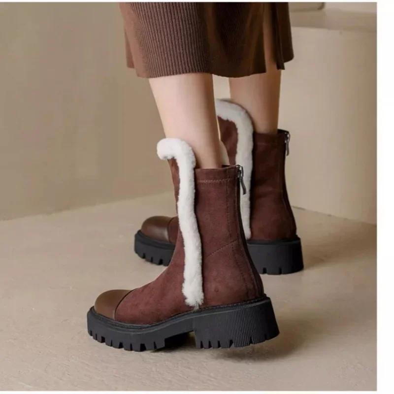 Модные женские винтажные ботильоны Челси, осенне-зимние ботинки на плоской платформе, замшевые готические ботинки, дизайн с задней молнией, короткие туфли 2024