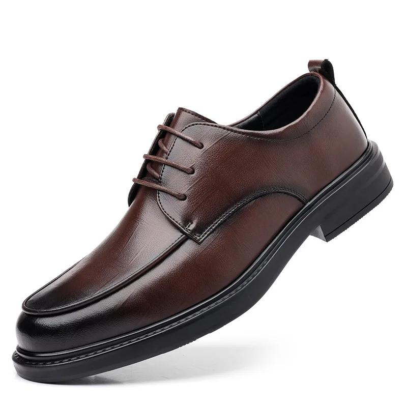 Модные мужские туфли, увеличивающие внутреннюю высоту, деловые туфли из натуральной кожи, модные туфли для мужчин, деловые свадебные туфли со шнуровкой однотонного цвета