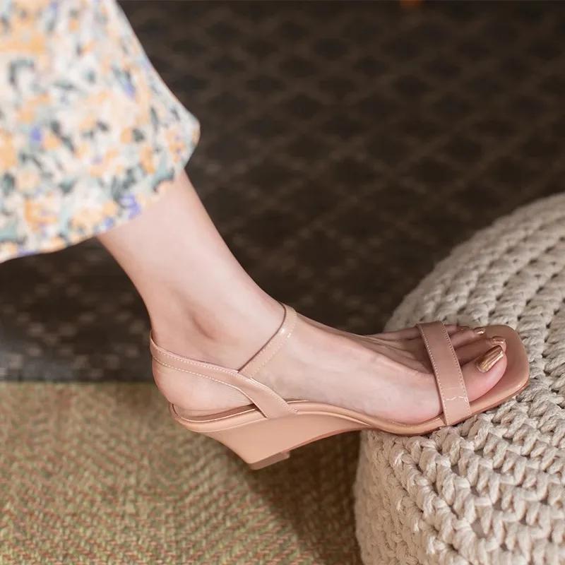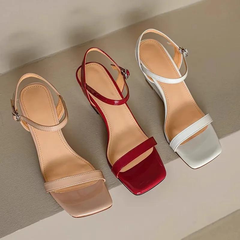 Модные босоножки на каблуке с наклонной подошвой, женские, винно-красные, темпераментные, квадратные, с открытым носком, женские, модные, римские, на высоком каблуке, летние, Zapatos Mujer