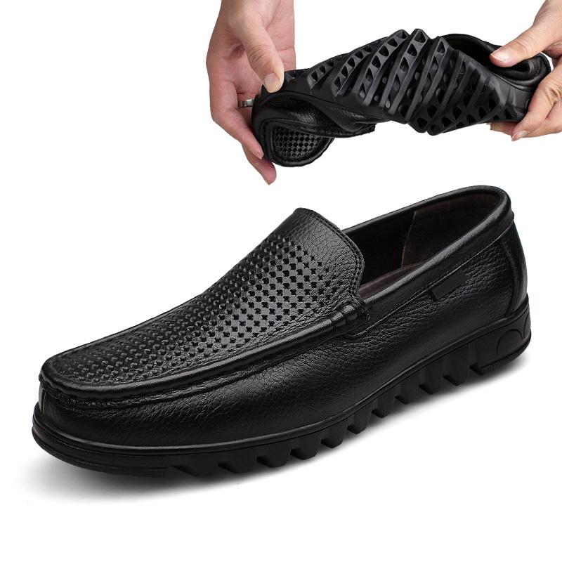 Модные мужские повседневные туфли из натуральной кожи с полыми отверстиями, деловые мокасины для мужчин, удобные мокасины для ходьбы и вождения, мужские туфли San